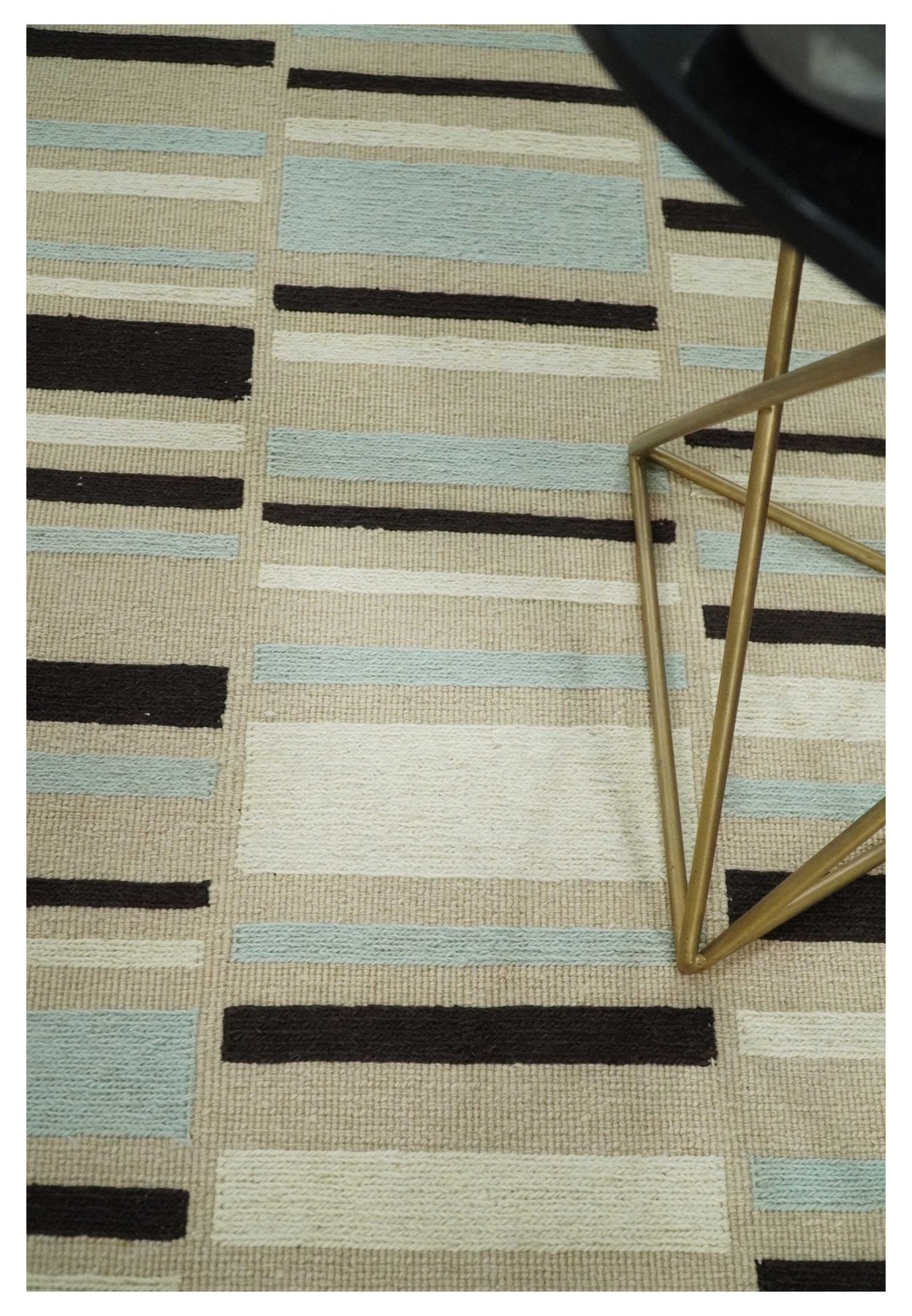 Modern Scandinavian 6x8 Silver and Brown Wool Hand Woven Area Rug | HL9 - The Rug Decor