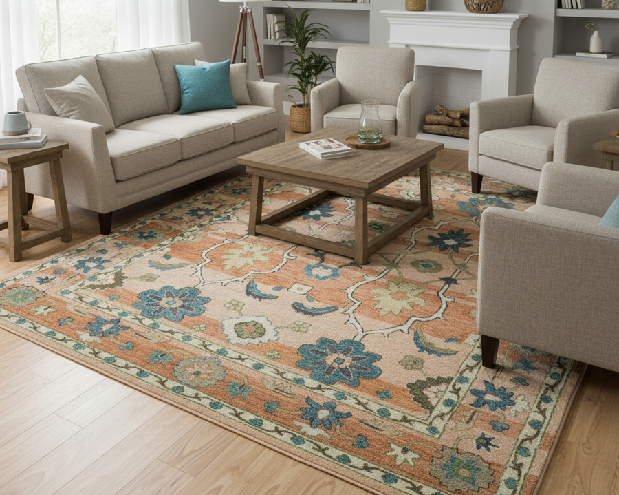 Custom Made Transitional Peach and Blue Hand Tufted Wool Area Rug