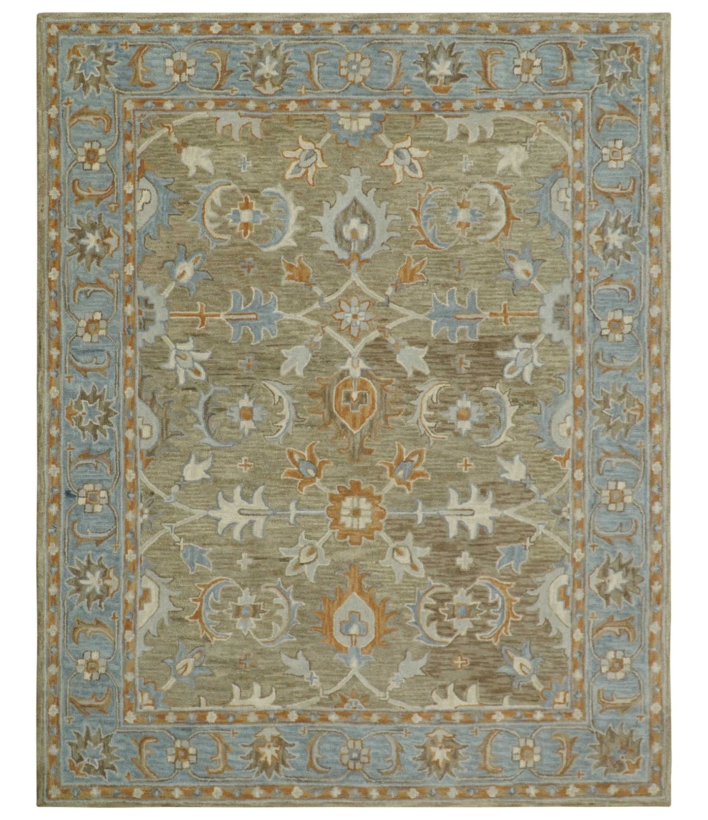 Custom Made Beige And Gray Traditional Hand Knotted wool area rug
