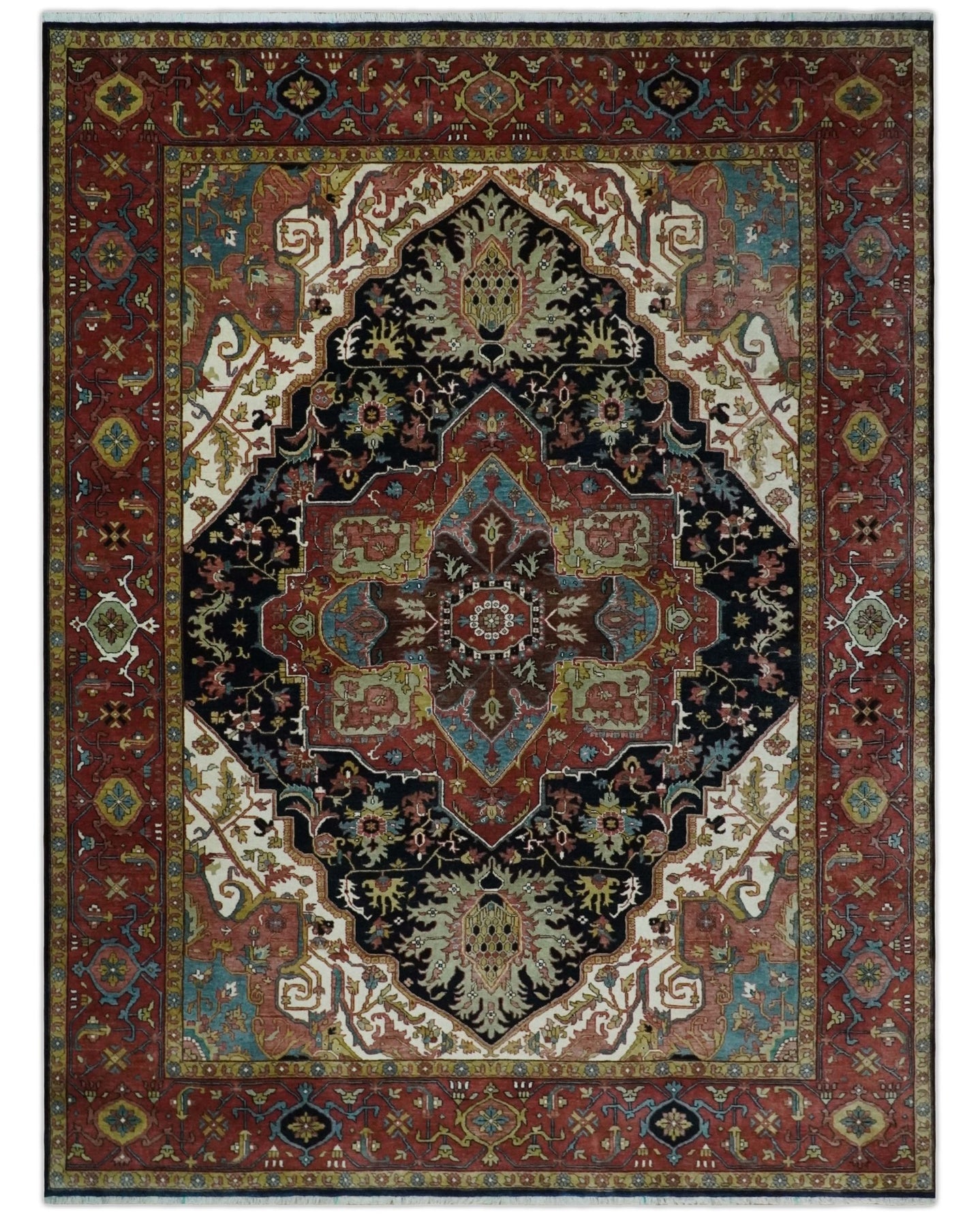 Custom Made Traditional Serapi Rust And Blue Hand Knotted wool area rug