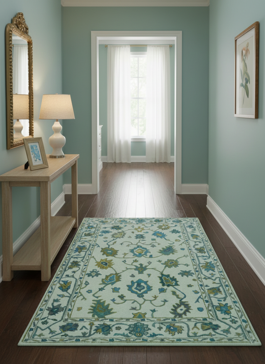 Custom Made Traditional Oushak Green Hand Tufted Wool Area Rug - The Rug Decor