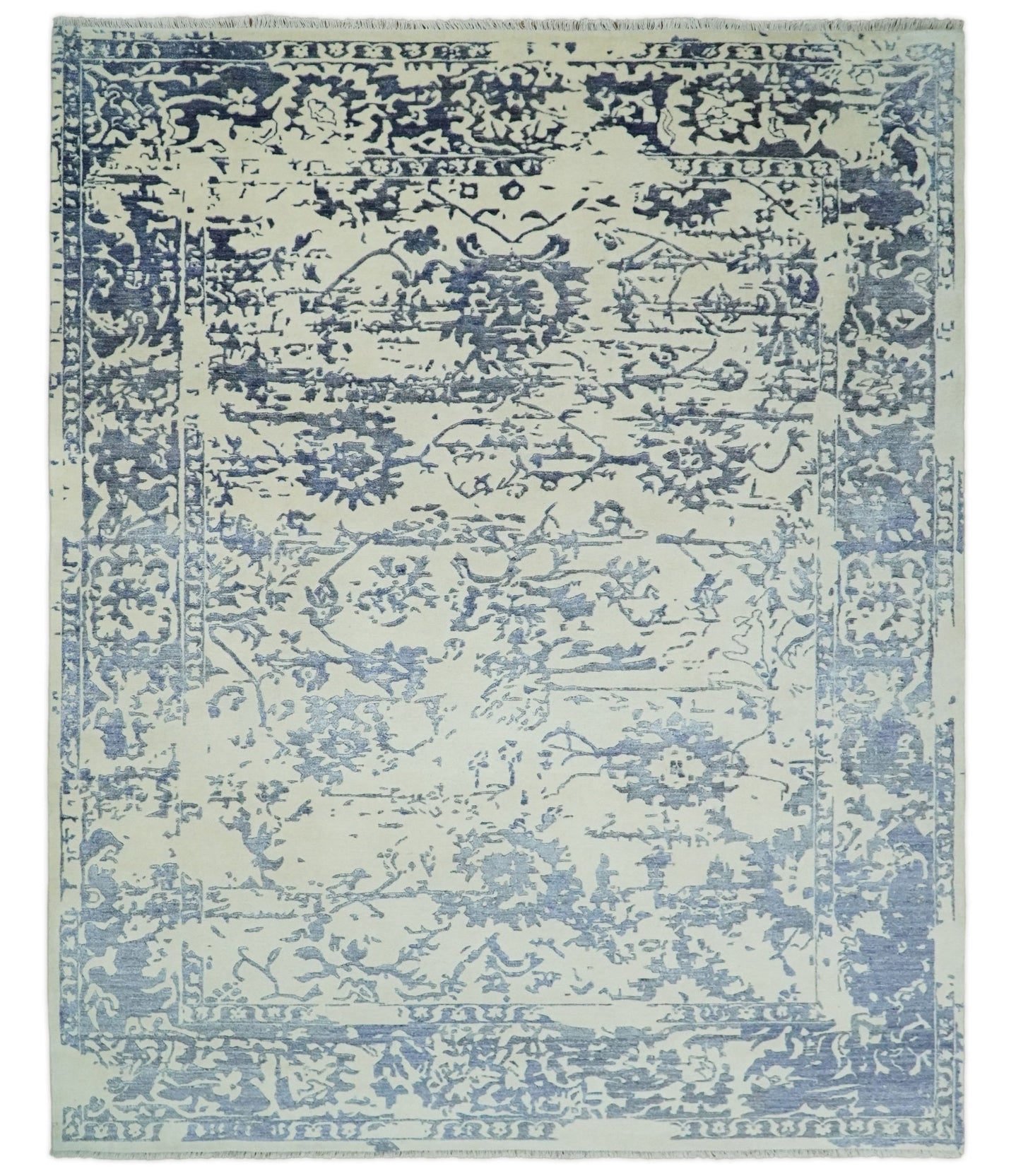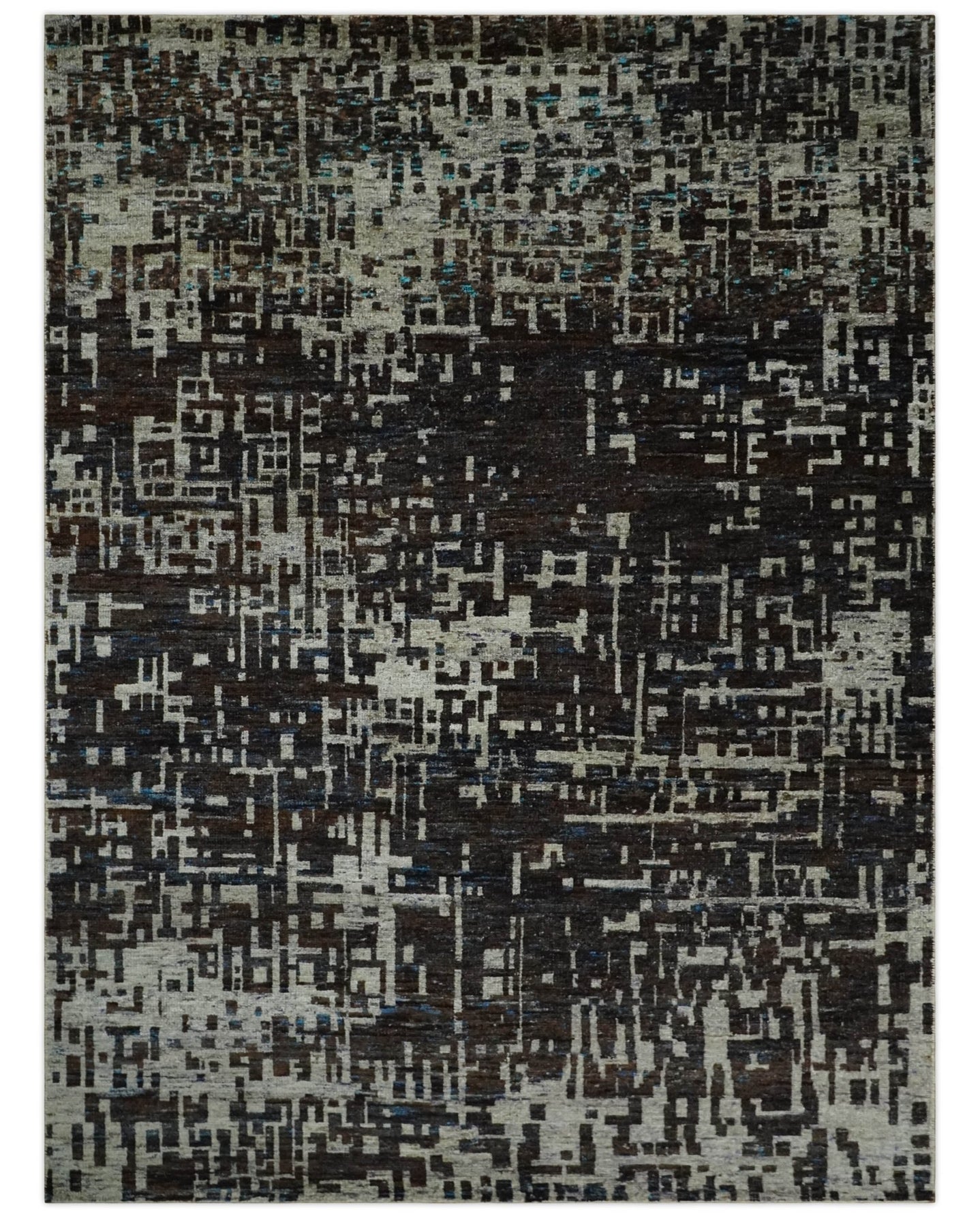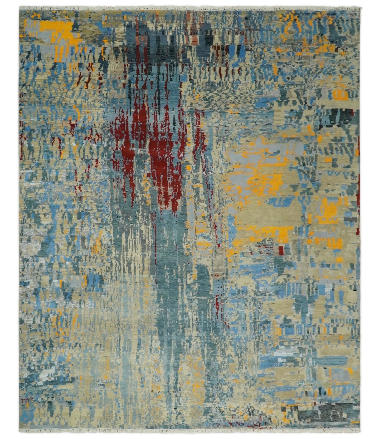 8x10, 9x12 and 10x14 Hand Knotted Ivory and Beige Modern Abstract Contemporary Recycled Silk Area Rug | OP14