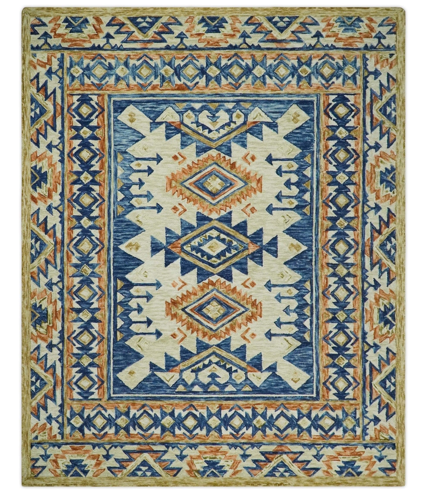 Ready to Ship Hand Knotted Blue and Rust Modern Oushak Area Rug