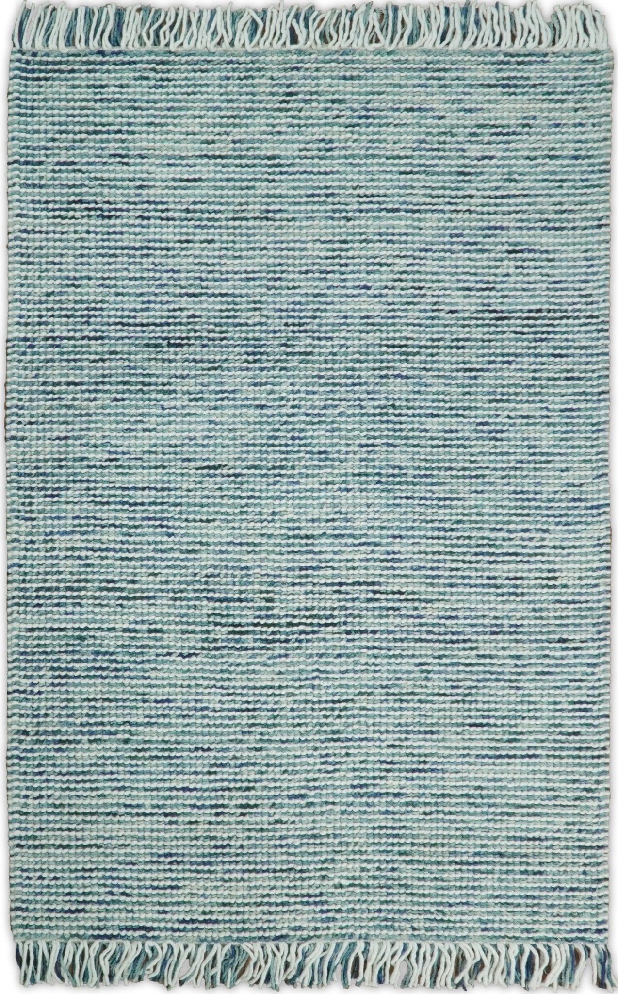 Contemporary Hand Woven Blue Woolen Chunky and Soft Area Rug