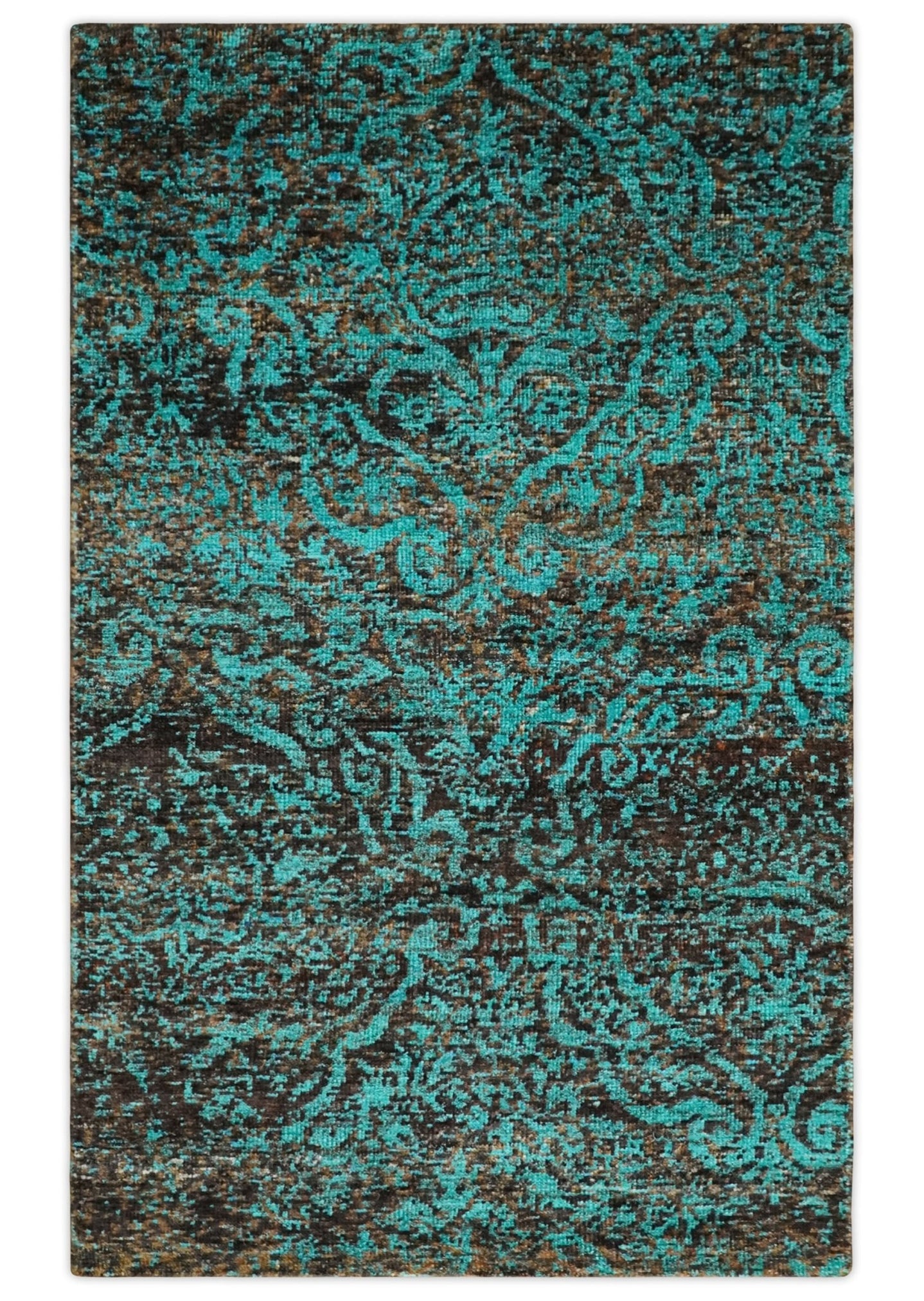 Hand Tufted Traditional Design Blue Overdyed Wool Area Rug