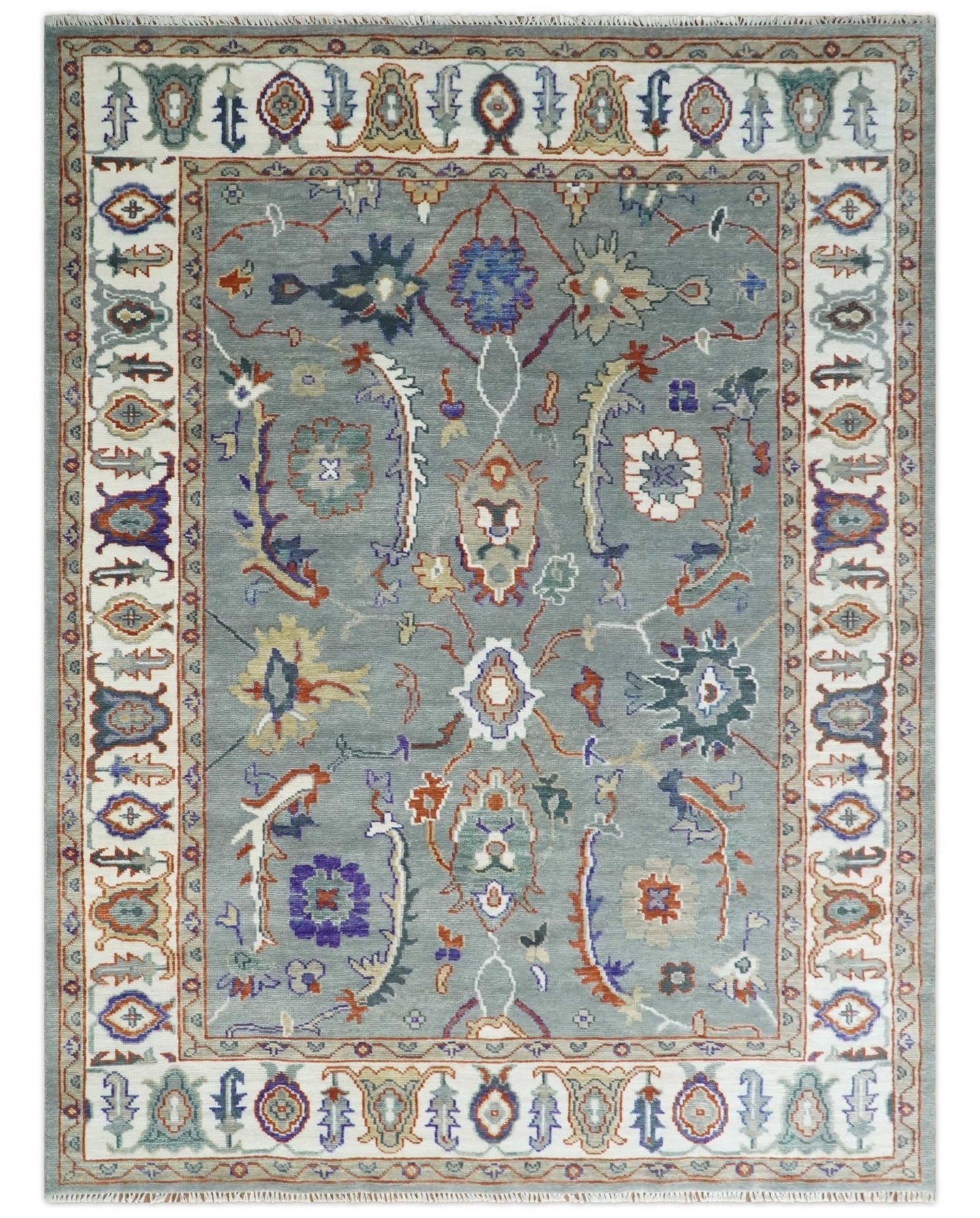 Hand Knotted Gray and Ivory Traditional Oriental Oushak Wool Area Rug