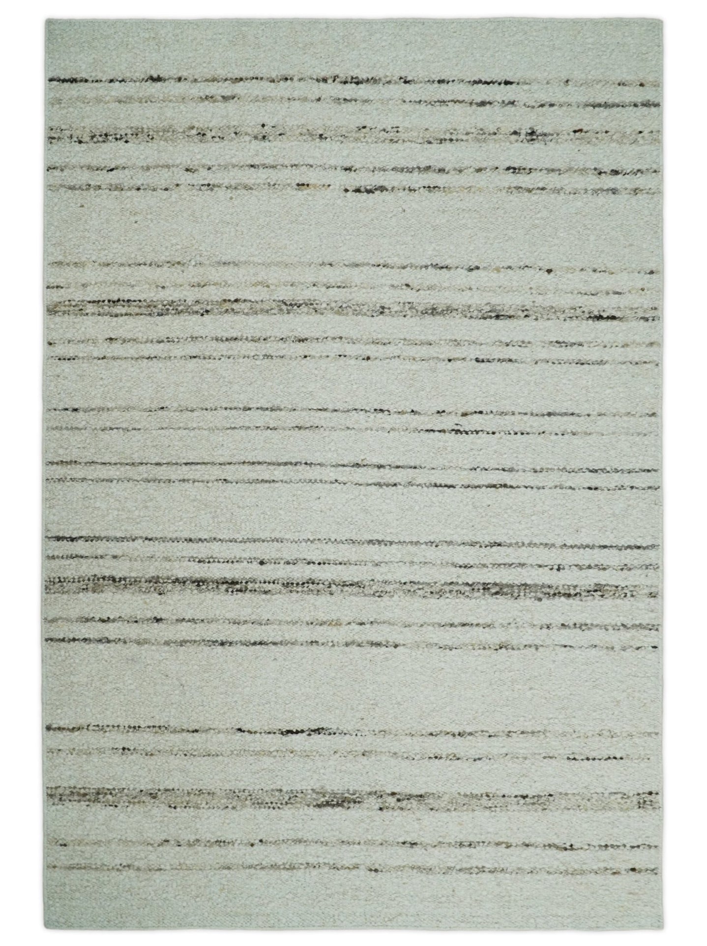 5x8 and 8x10 Hand Made Woolen Modern Blue and Ivory Area Rug | EVE001