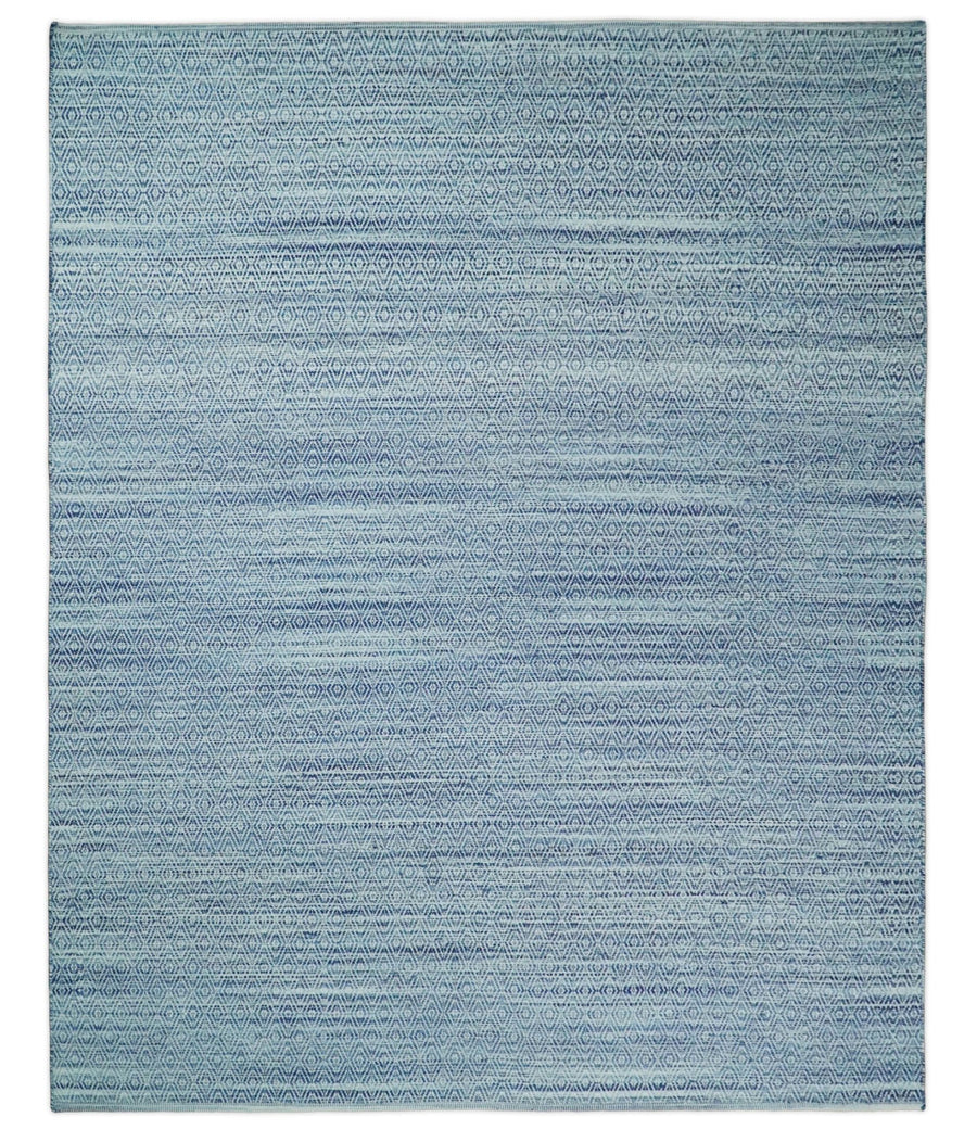 Handmade Boho 2x3, 5x8 and 8x10 White and Blue Wool Blend Dhurrie Rug | VIK1