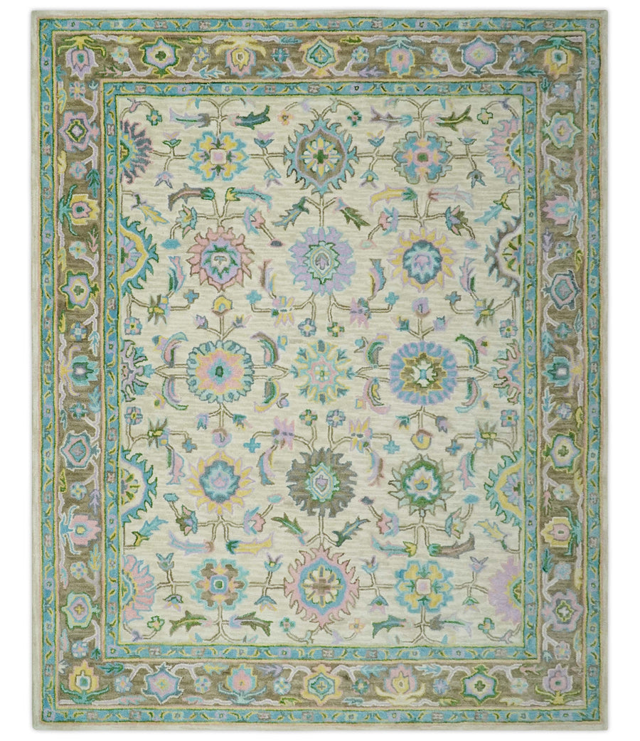 Wool Vibrant Colorful Hand knotted Oushak Area Rug