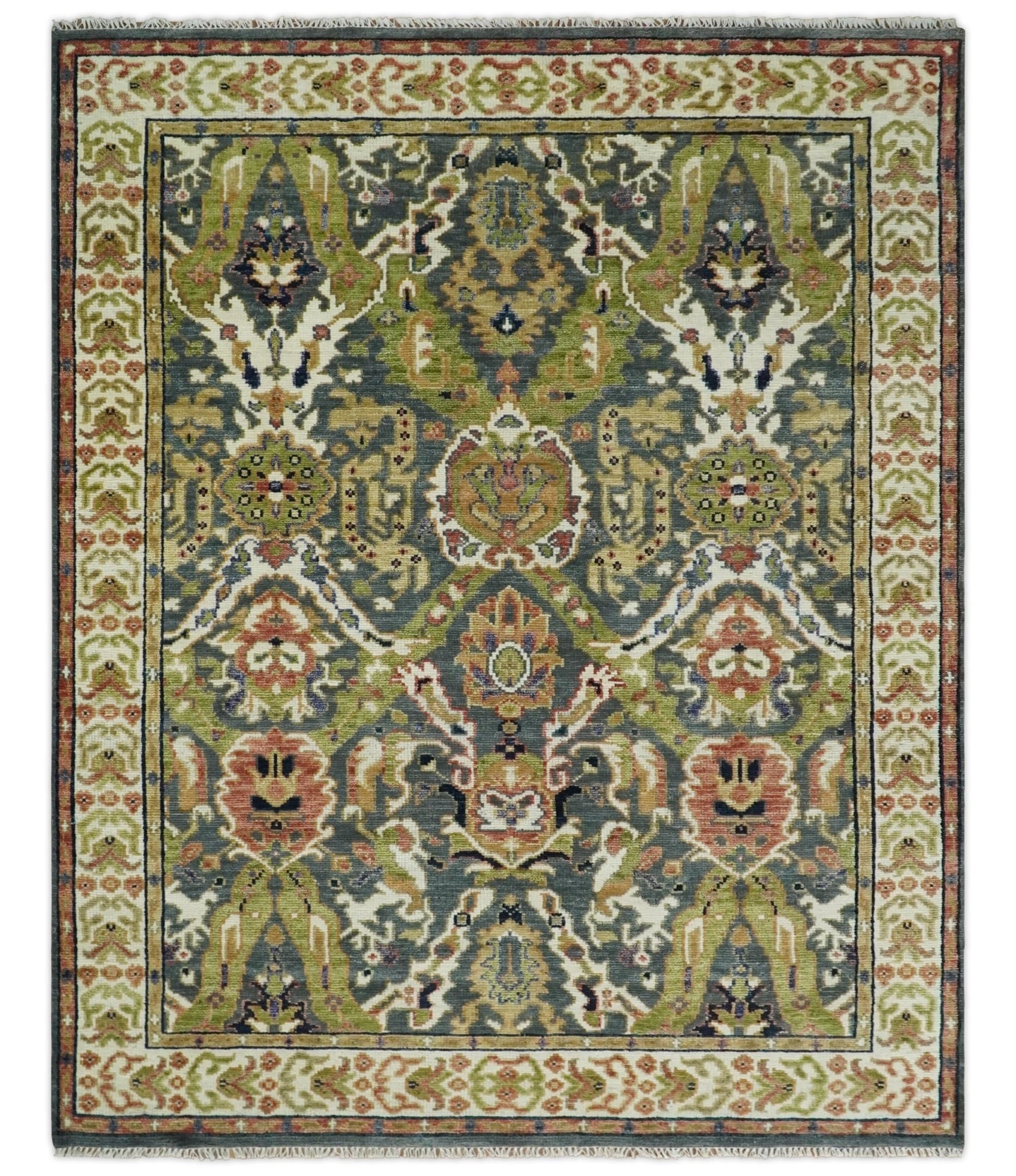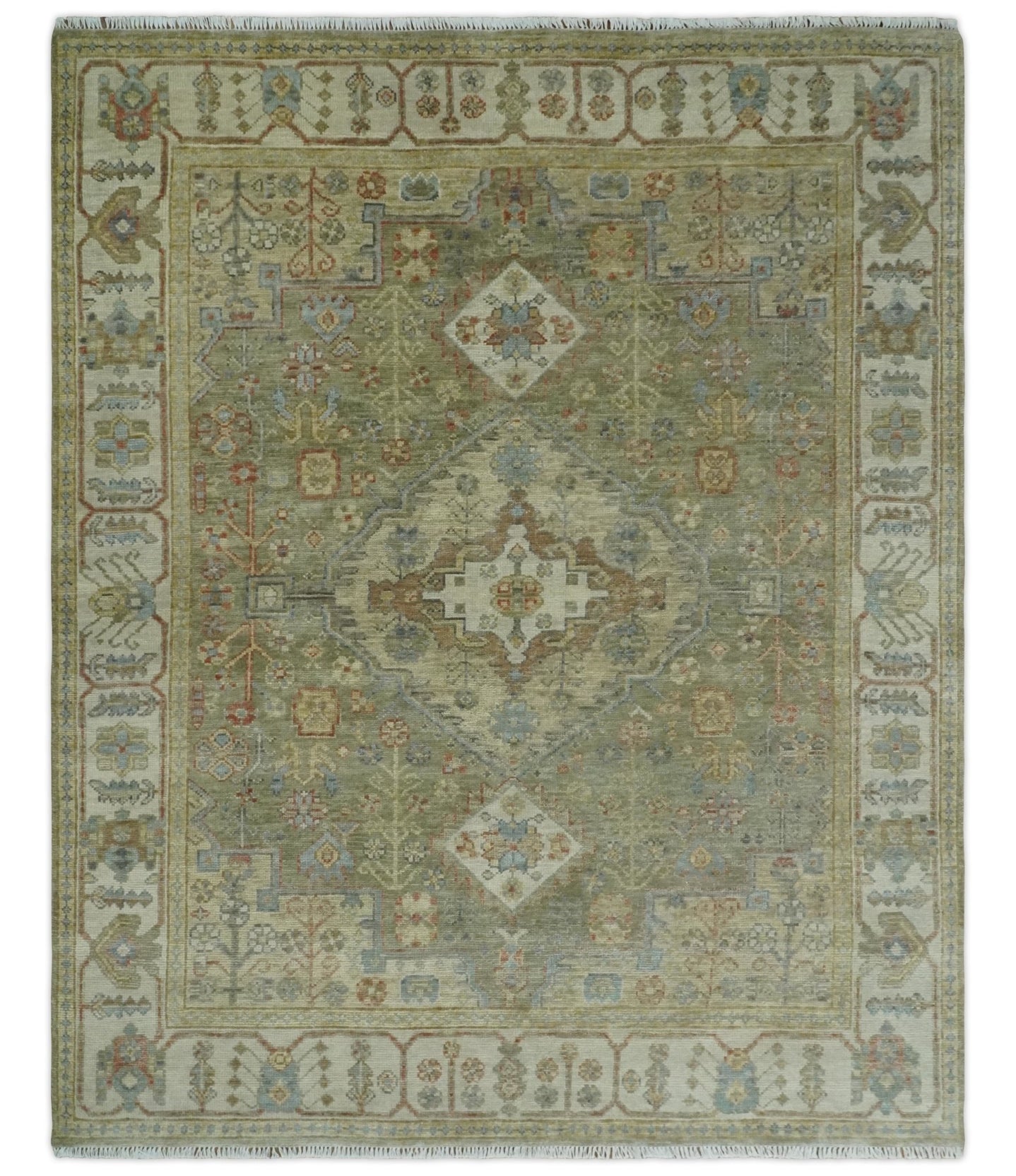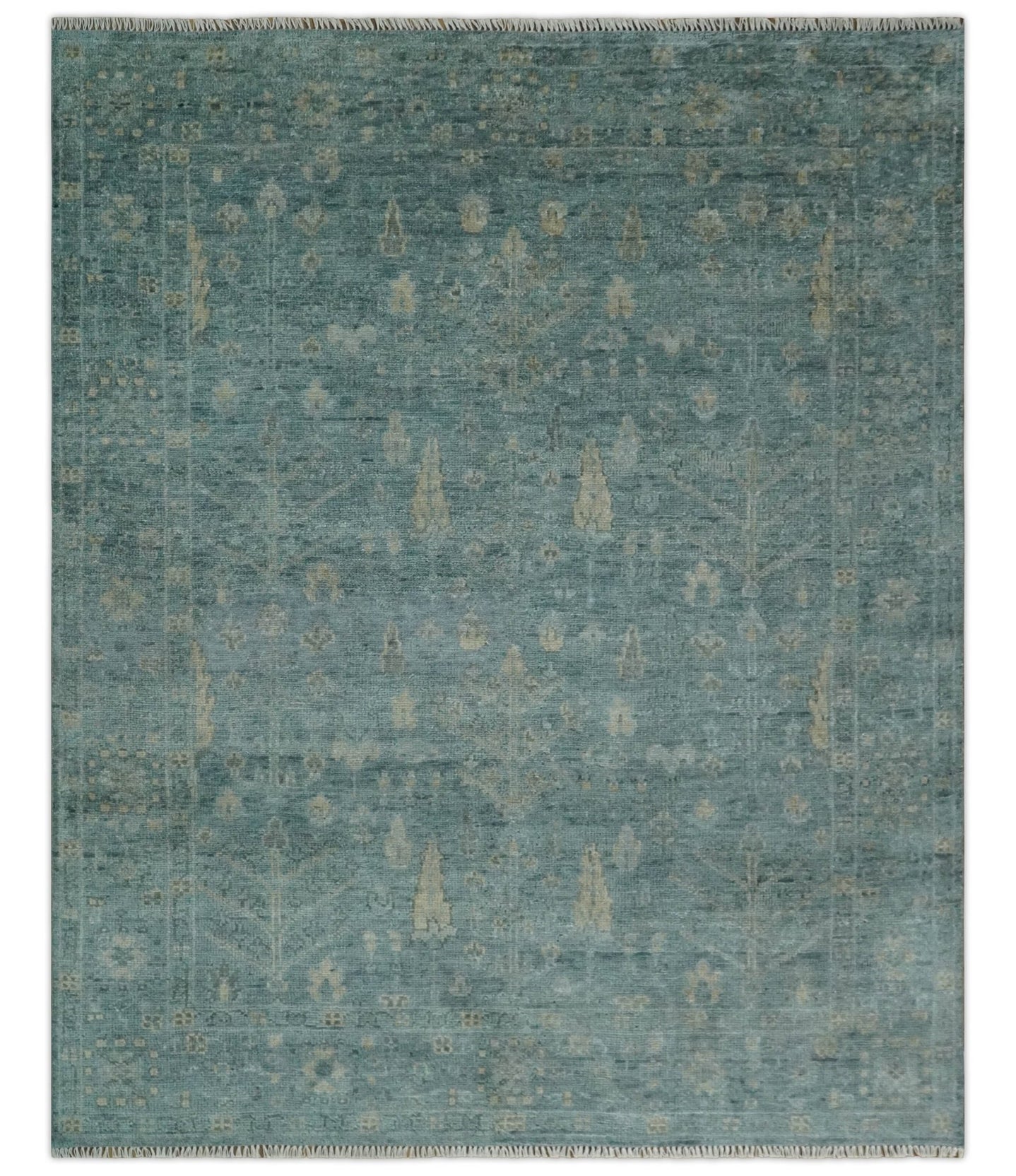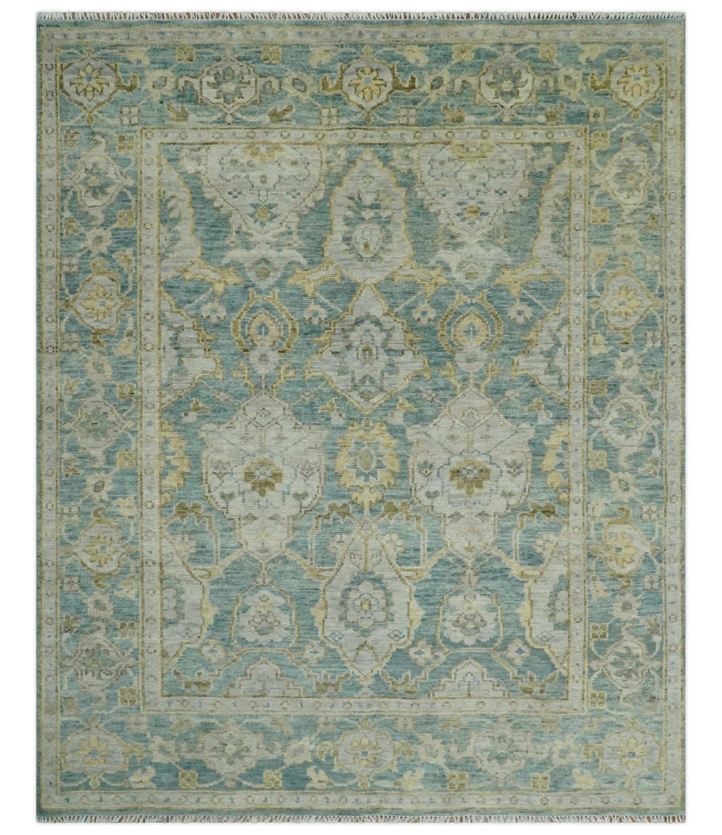 Hand Knotted Traditional Turkish Teal Oushak Wool Rug