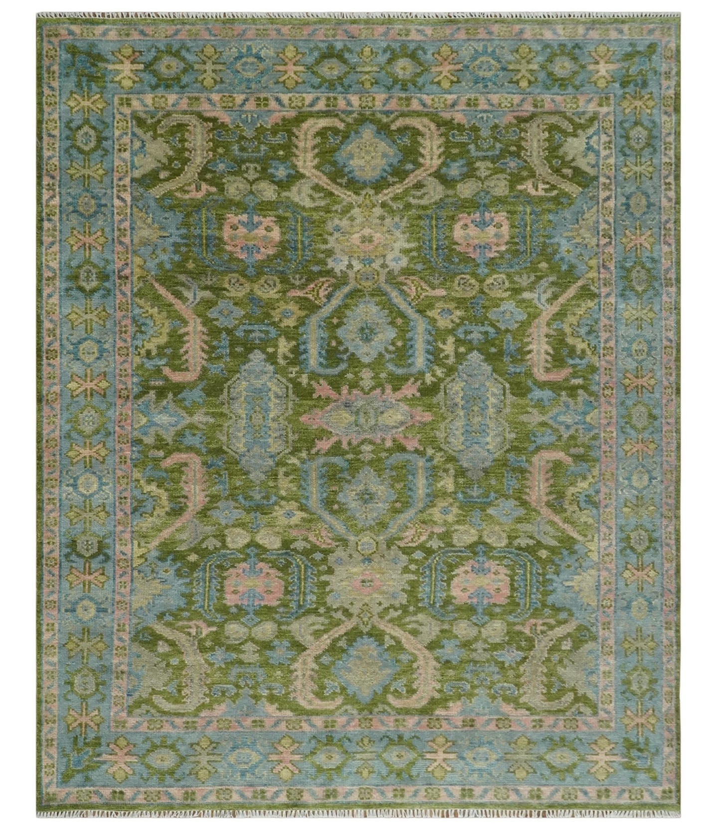 Antique Moss Green and Pink Traditional Multi Size Wool Area Rug