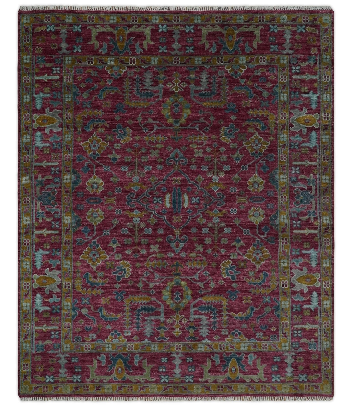 Hand Knotted Maroon and Gold Traditional Antique Style Wool Area Rug