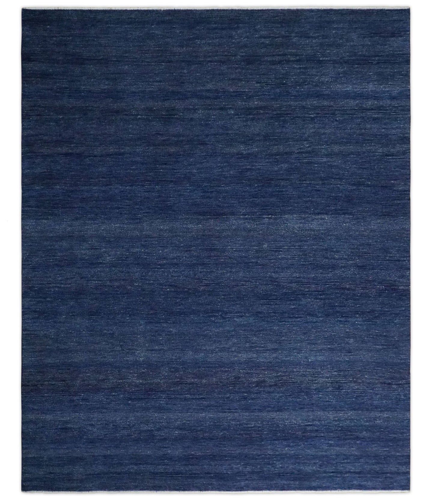 Solid Plane Navy Blue Hand knotted Modern Custom Made wool Area Rug