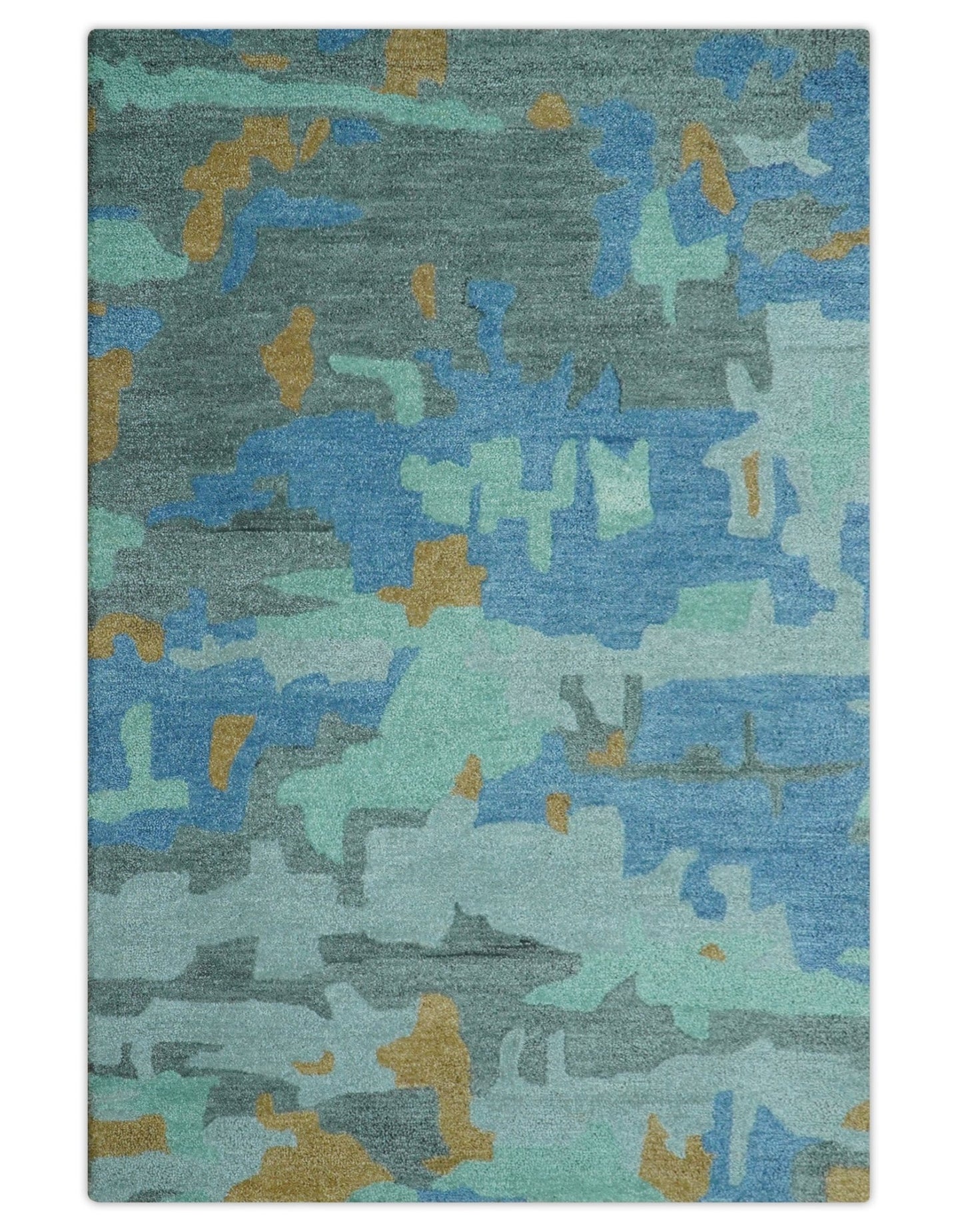 Custom Made Modern Abstract Blue Hand Tufted Wool Area Rug