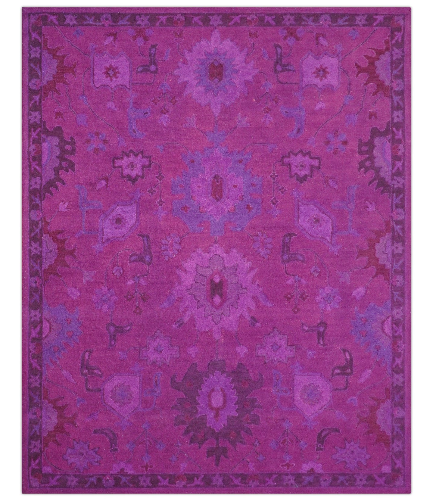Custom Made Overdyed Traditional Oushak Purple Hand Tufted Wool Area Rug