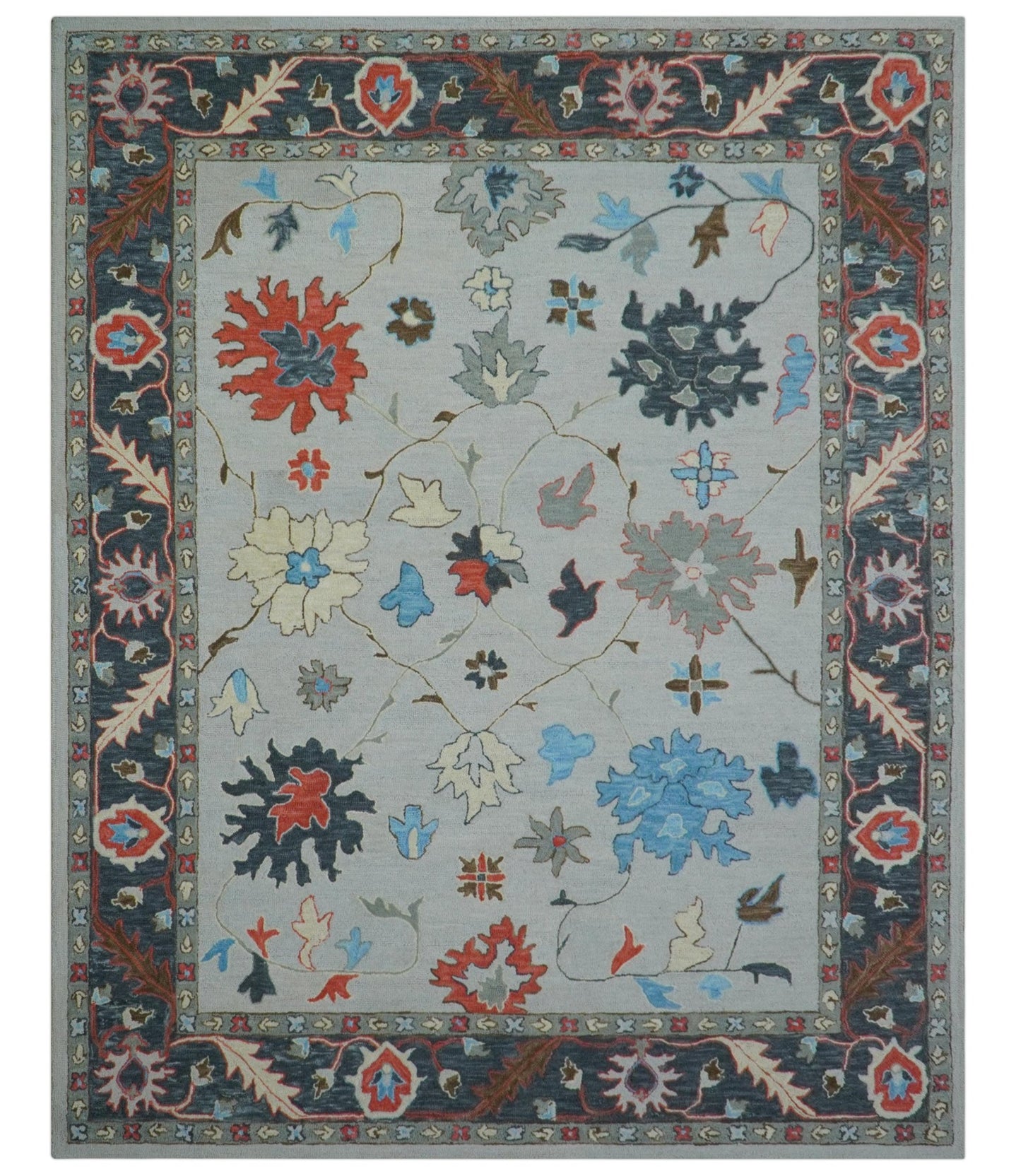 Custom Made Traditional Oushak Silver Hand Tufted Wool Area Rug