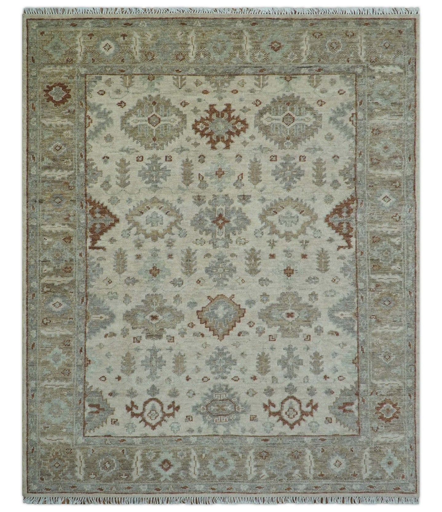 Custom Made Traditional Turkish Beige Hand knotted Wool Area Rug