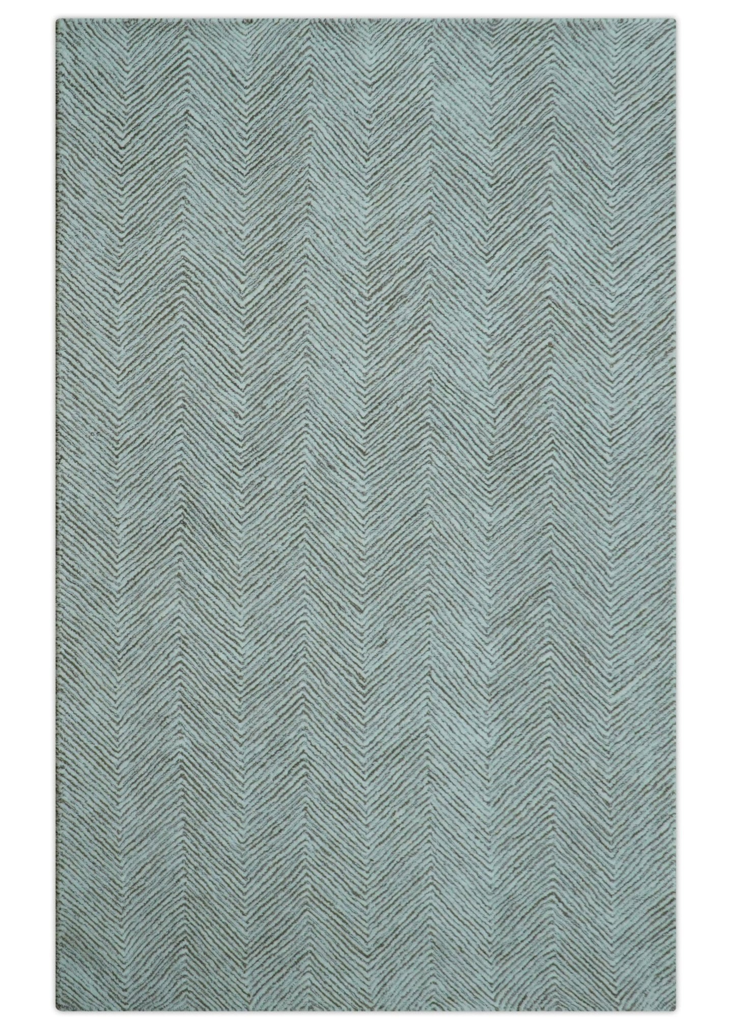Custom Made Modern Chevron Ivory And Brown Hand Tufted Wool Area Rug