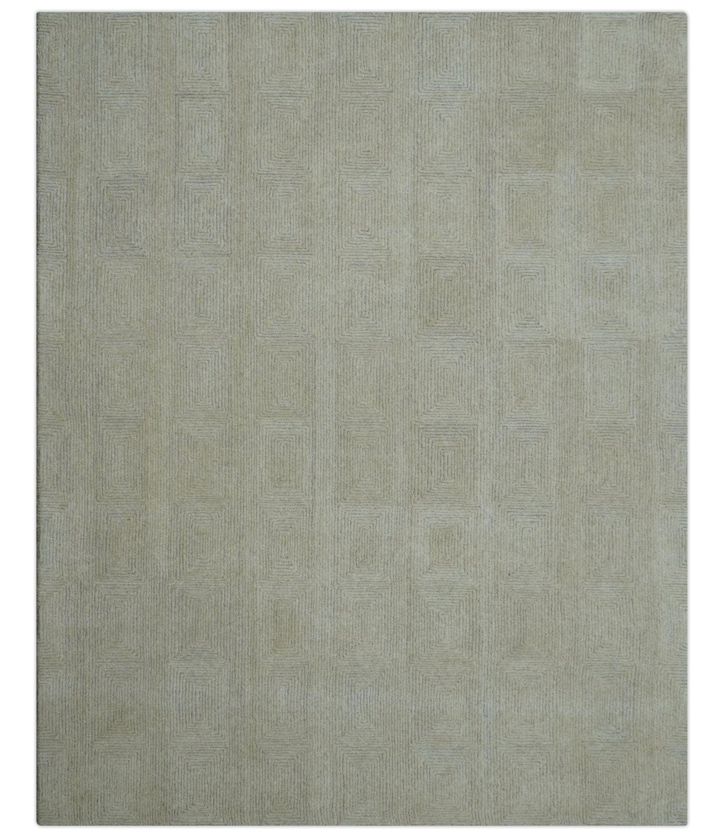Custom Made Modern Geometrical Beige Hand Tufted Wool Area Rug