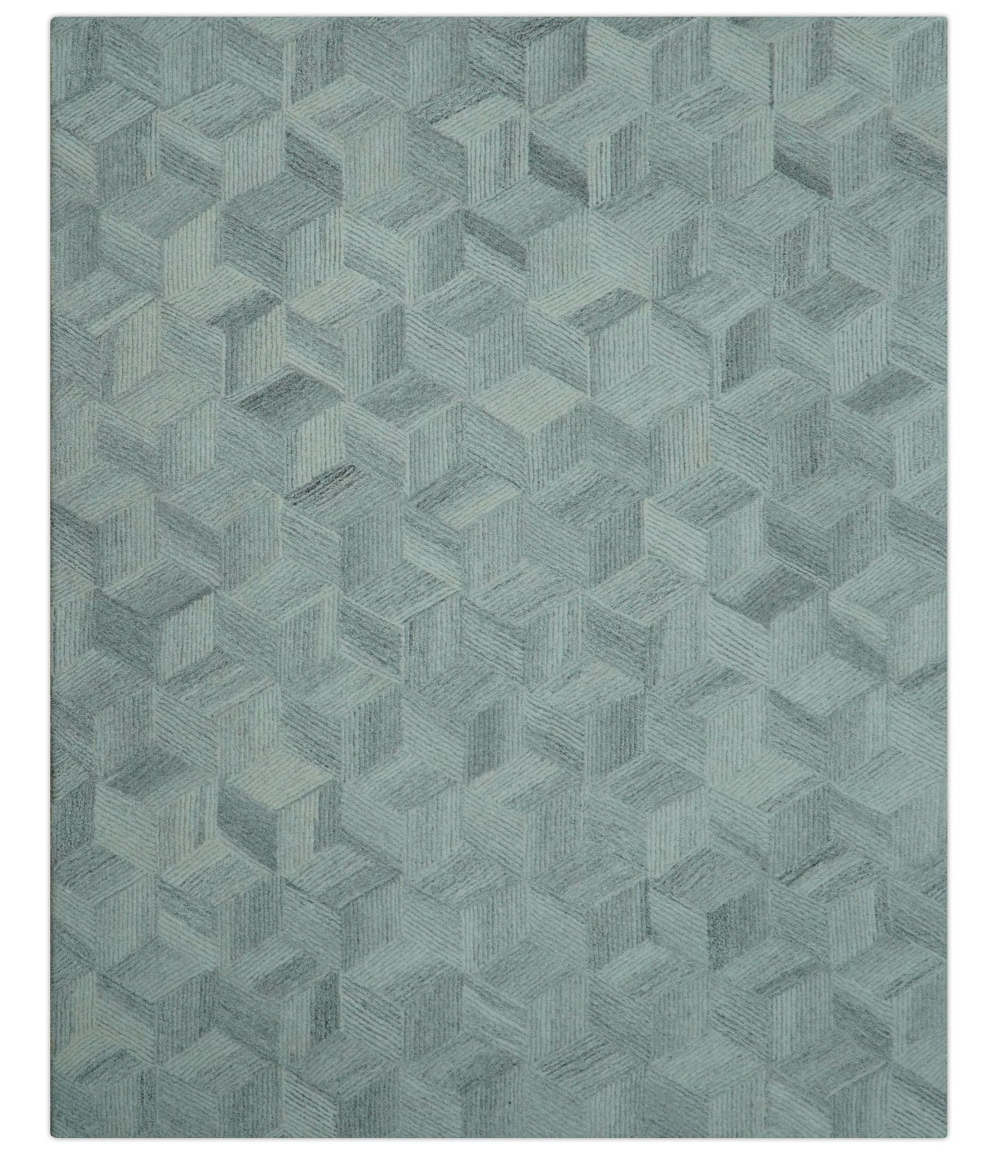 Custom Made Modern Geometrical Gray Hand Tufted Natural Wool Area Rug