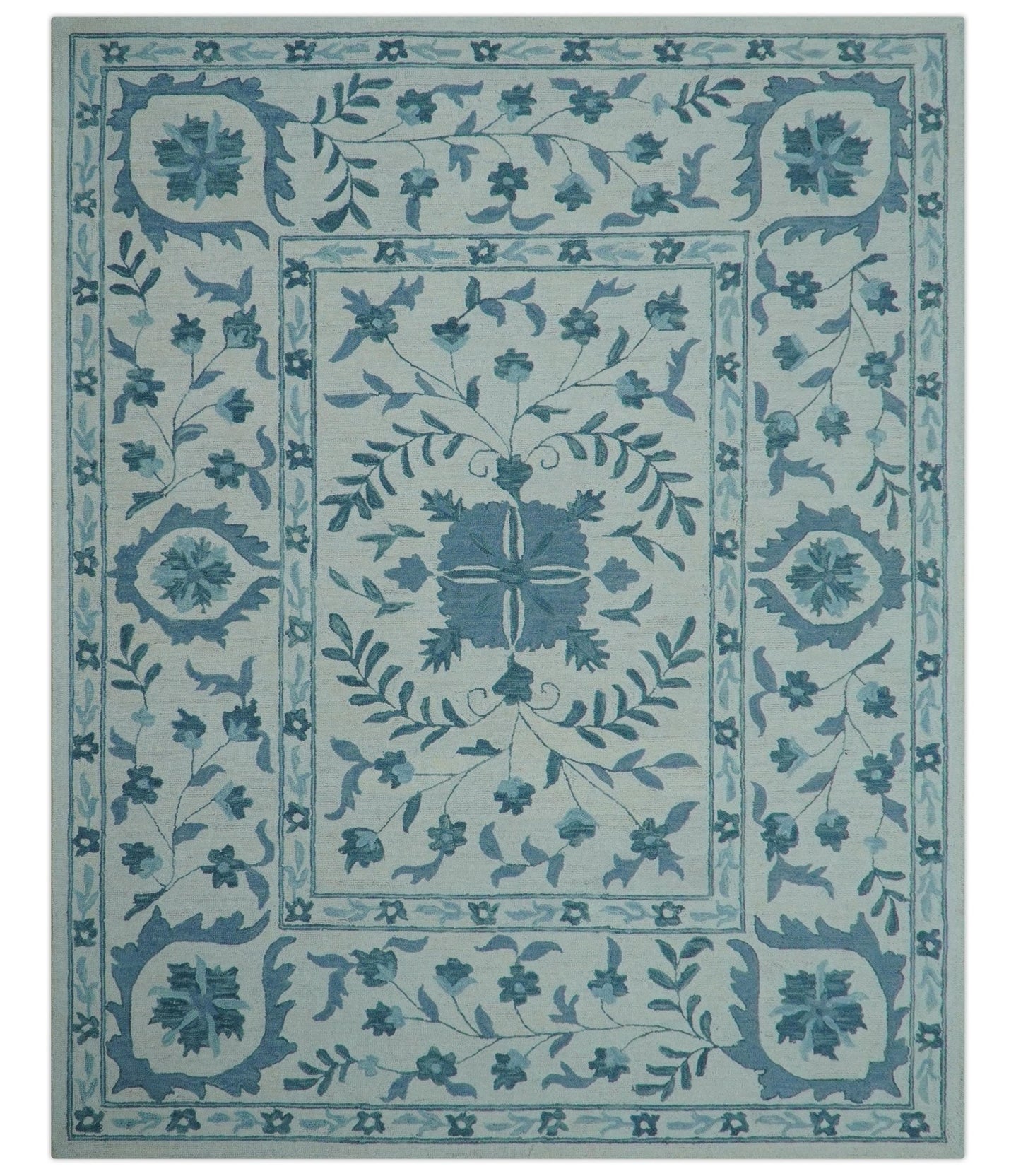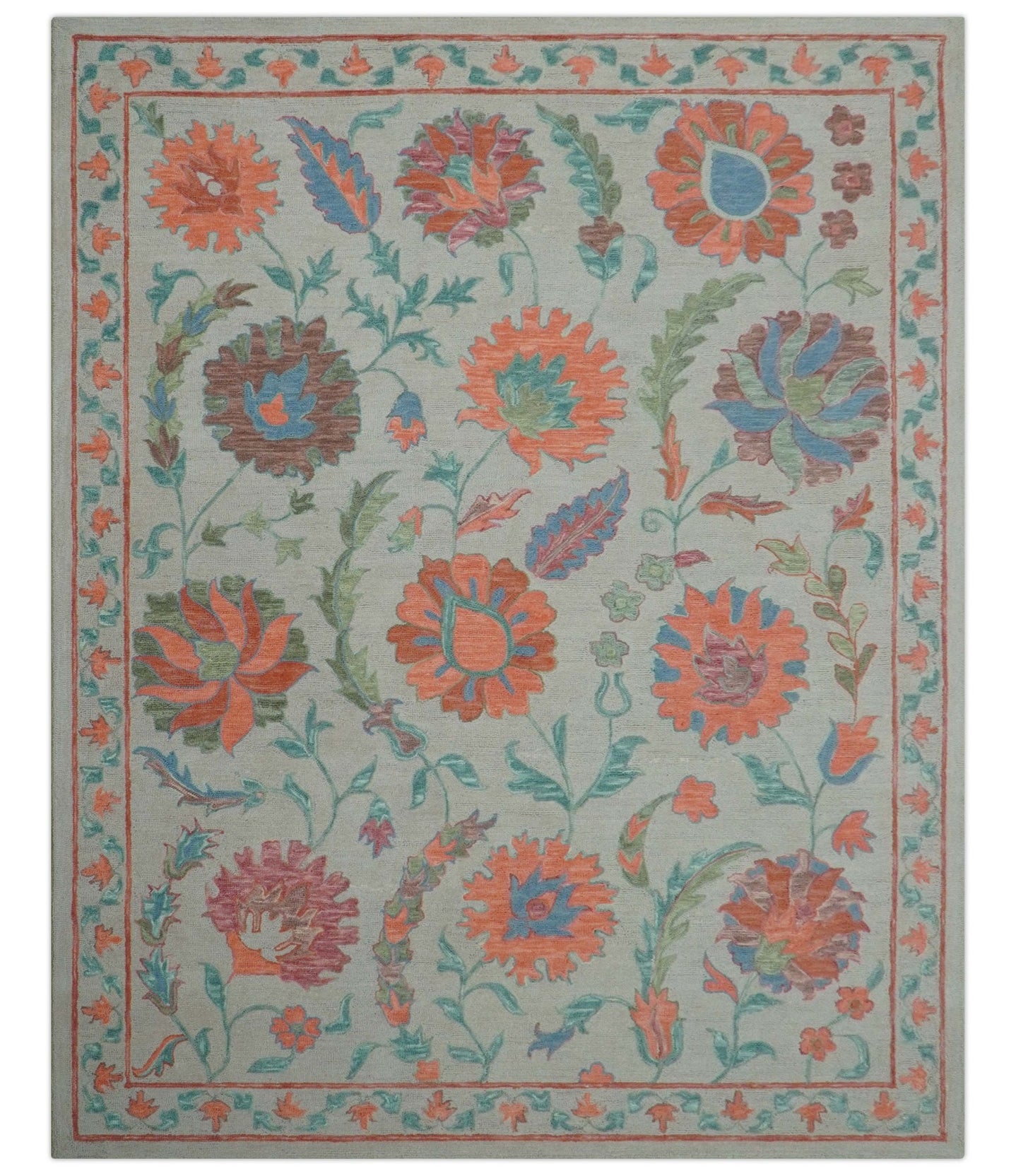 Custom Made Floral Olive Green Hand Tufted Wool Area Rug