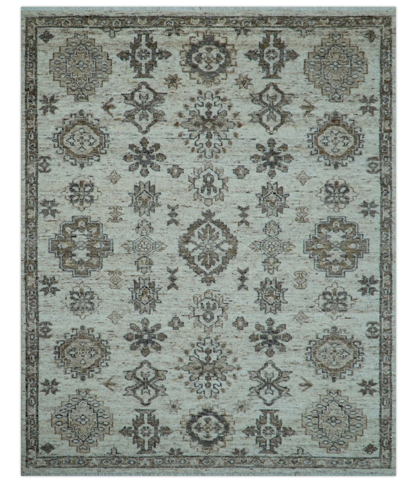 Custom Made Oriental Uzbek Design Floral Beige Hand Tufted Wool Area Rug