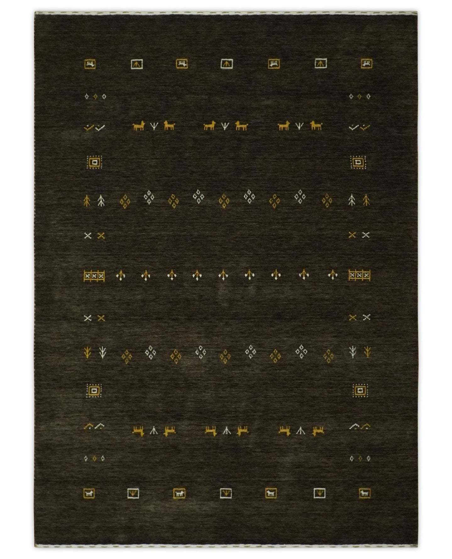 Custom Made Gabbeh Blue, Brown and Gold Stripes Design Wool Rug