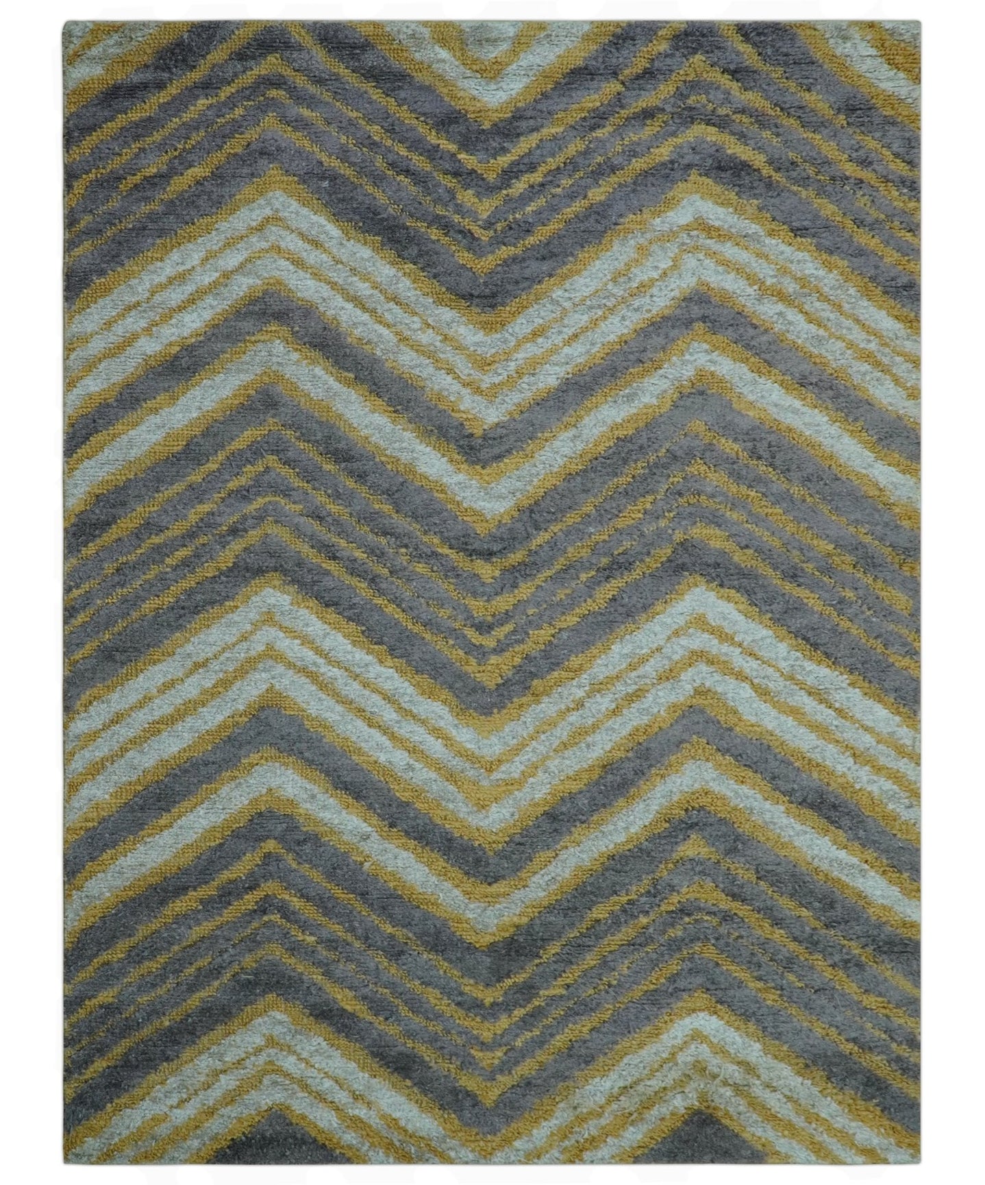 Custom Made Transitional Silver, Gold and Gray Hand Knotted Wool Rug
