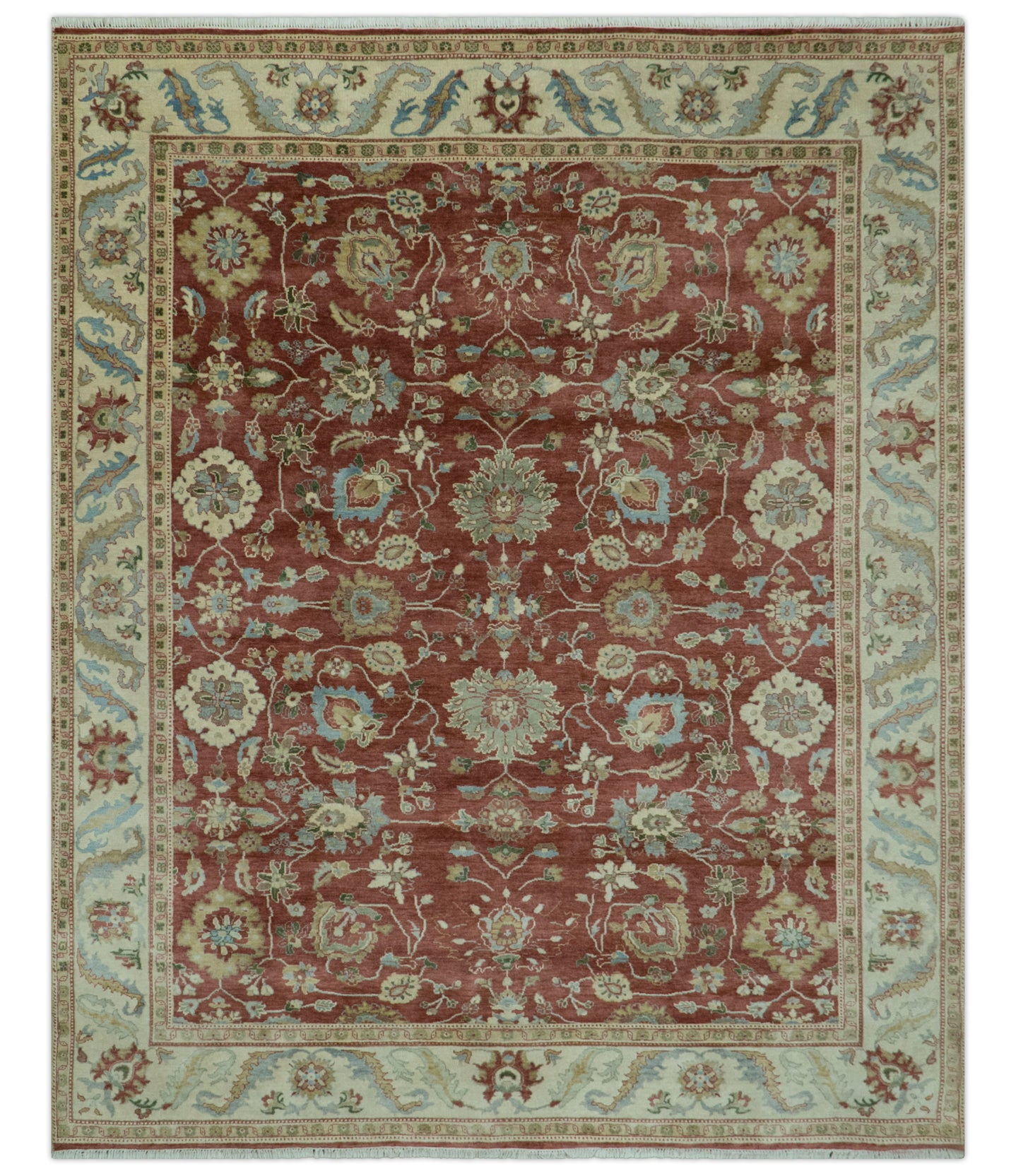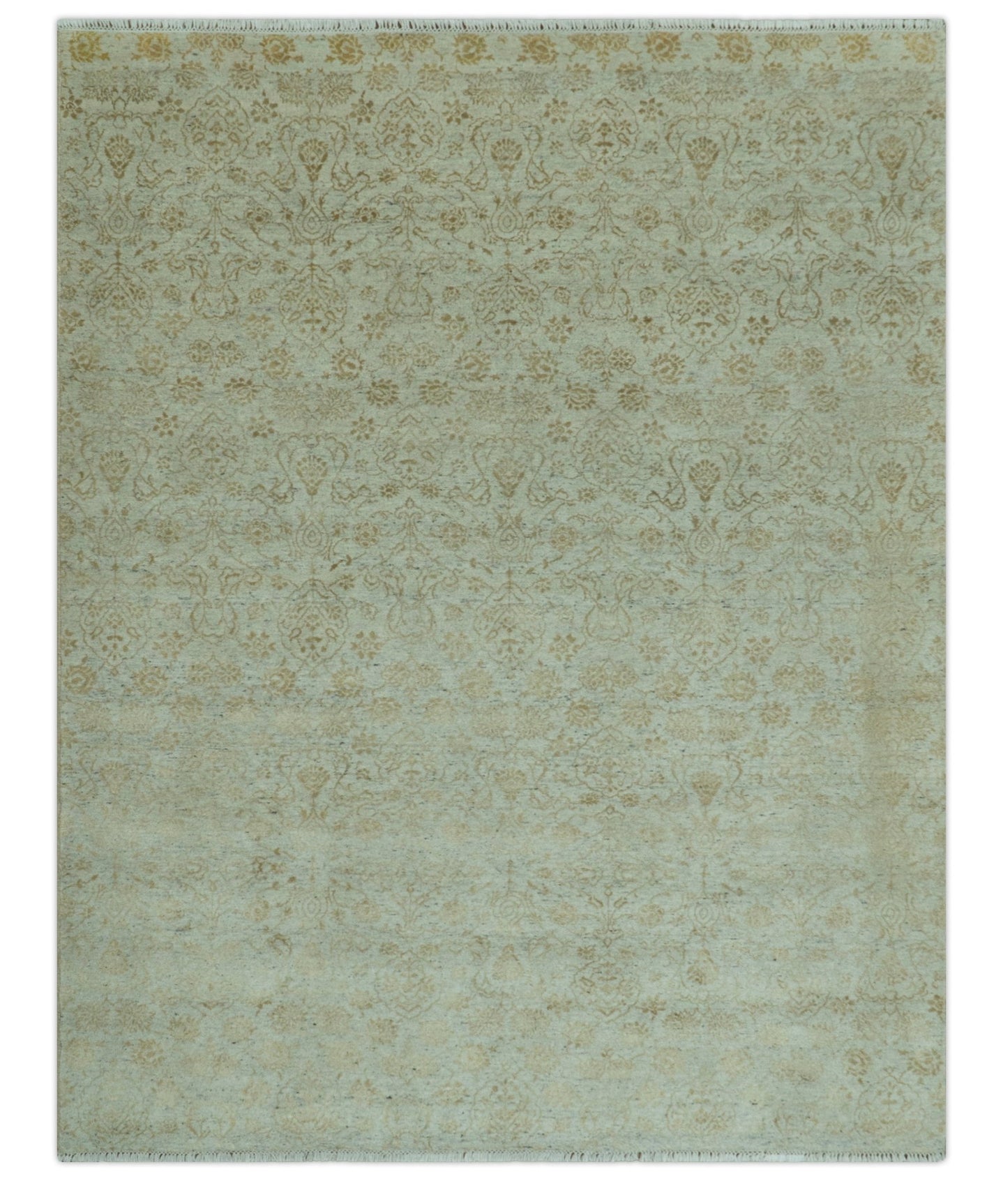 Gold, Blue And Green Transitional Hand Knotted Custom Made wool area rug