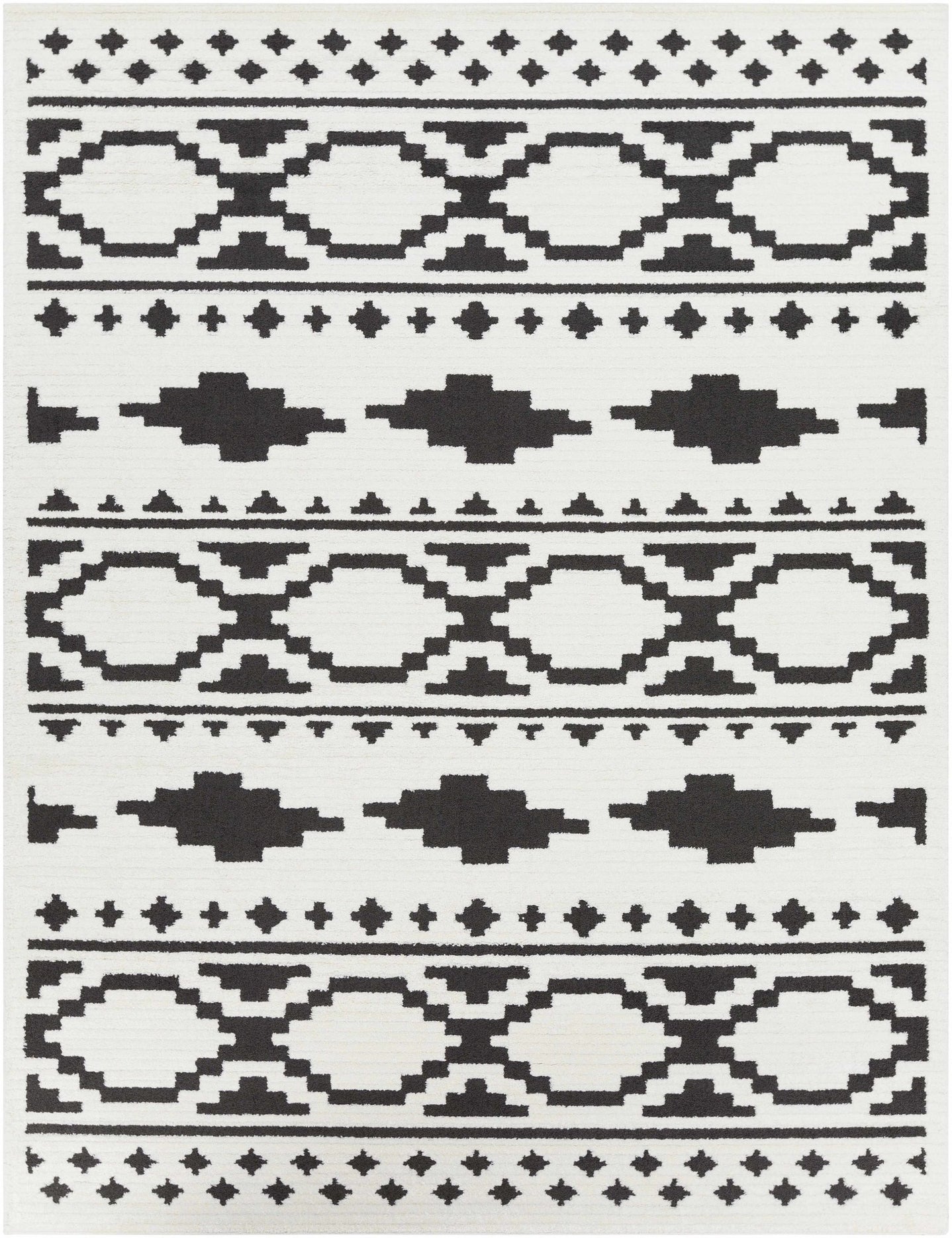 Ivory and Charcoal Traditional Tribal Design Multi size area rug