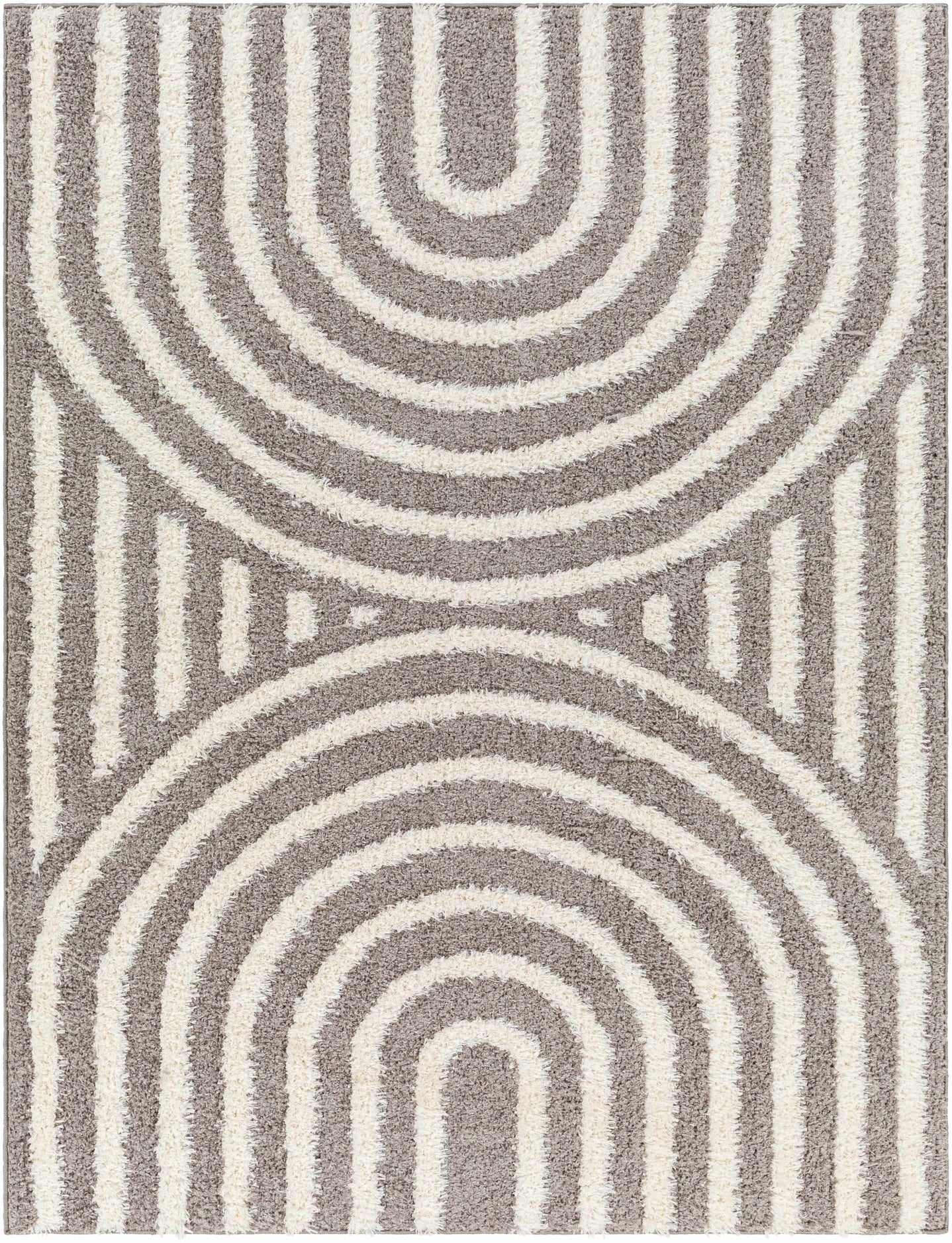 Modern Geometrical Gray and Ivory Plush Pile area rug