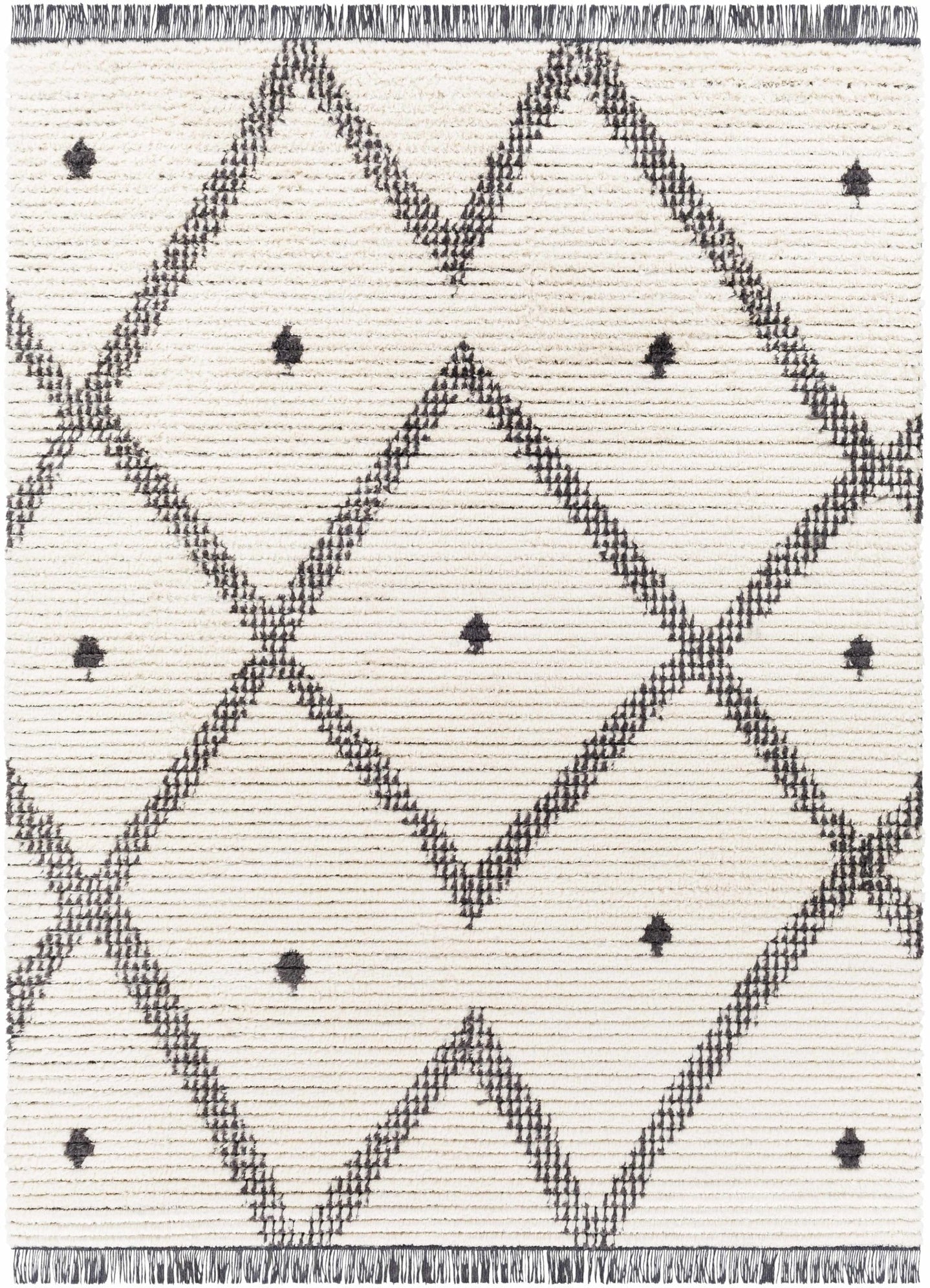 Chaia Dotted Modern Ivory and Charcoal Stripes Texture area rug