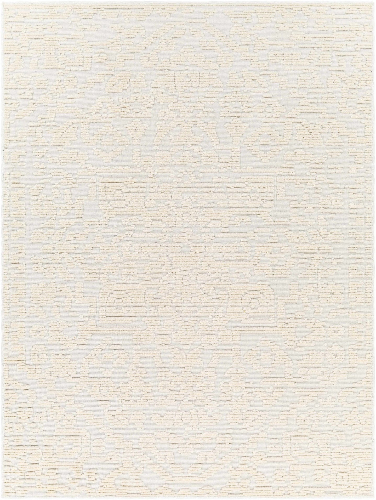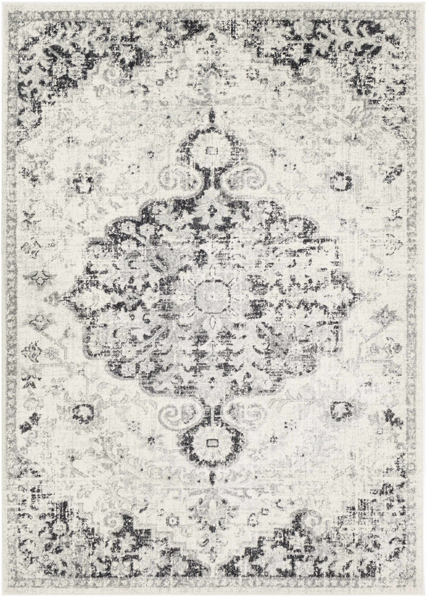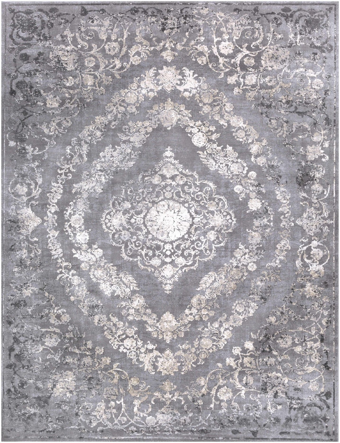 Antique Design Gray, Silver and Ivory Carved Texture Medallion Multi Size Rug