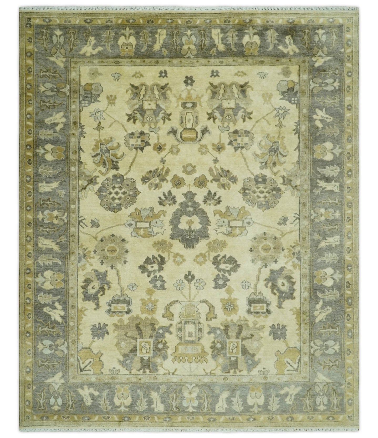 Antique look Beige, Gray and Charcoal Traditional Oriental Oushak rug