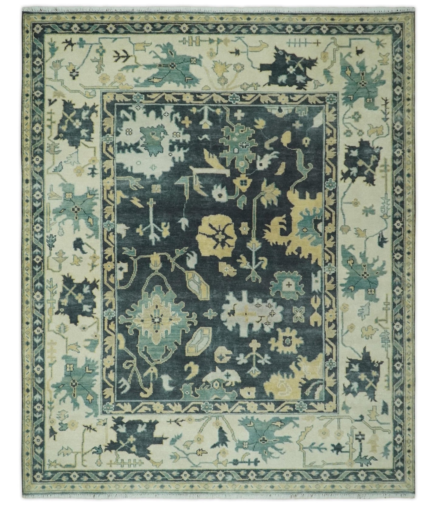 Classic Style Hand Woven Ivory and Charcoal Geometrical area rug