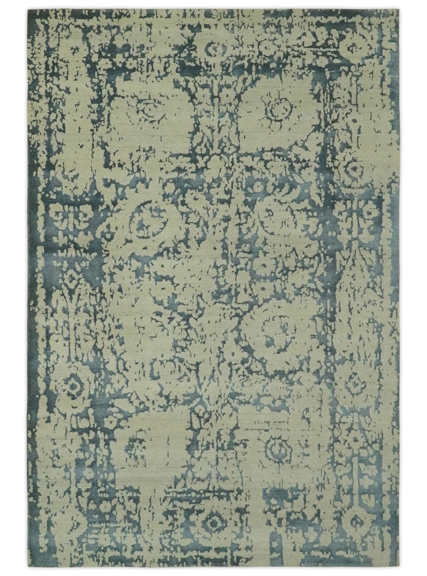 Teal and Brown Modern Contemporary Design Custom Made wool Rug