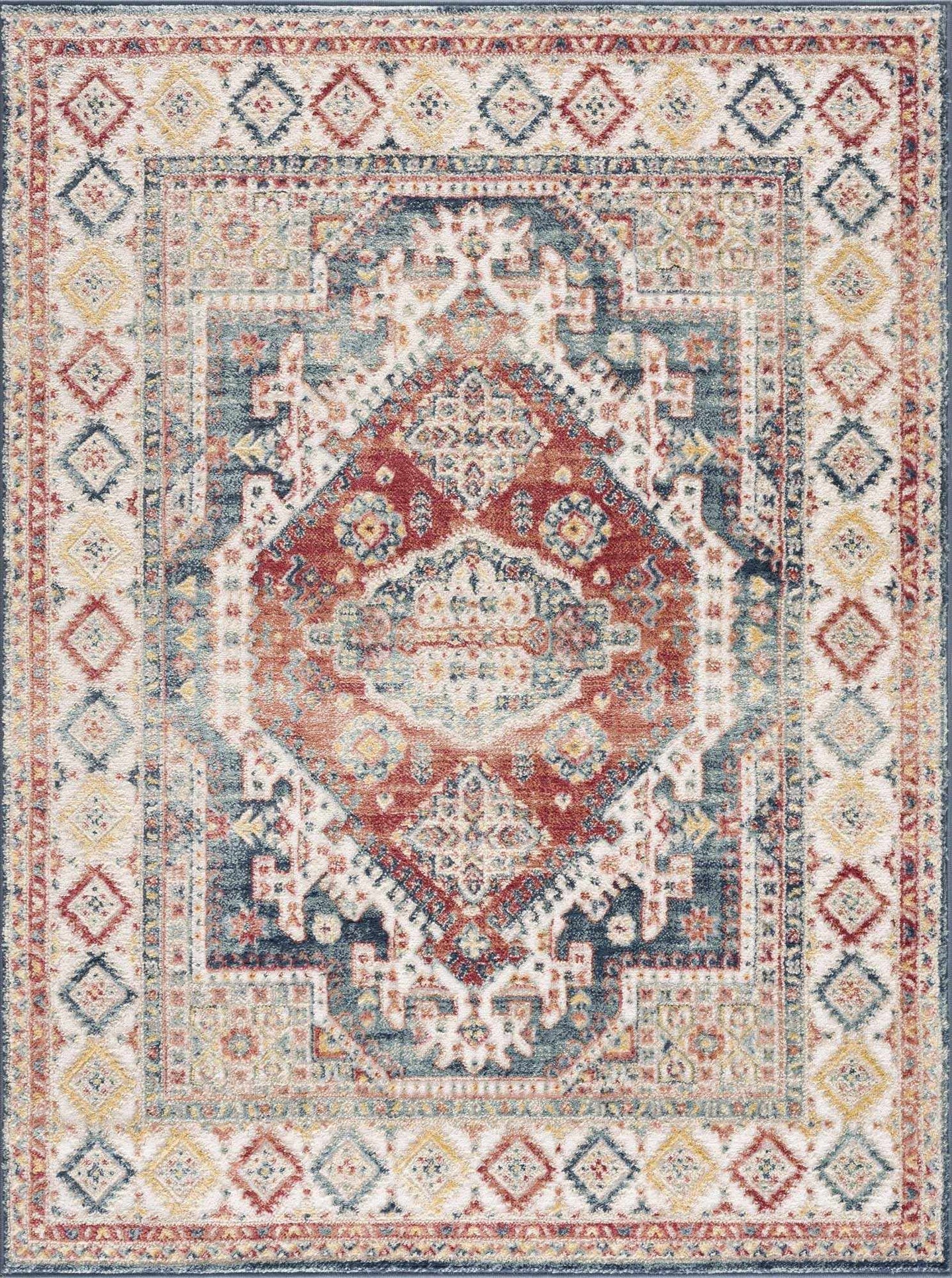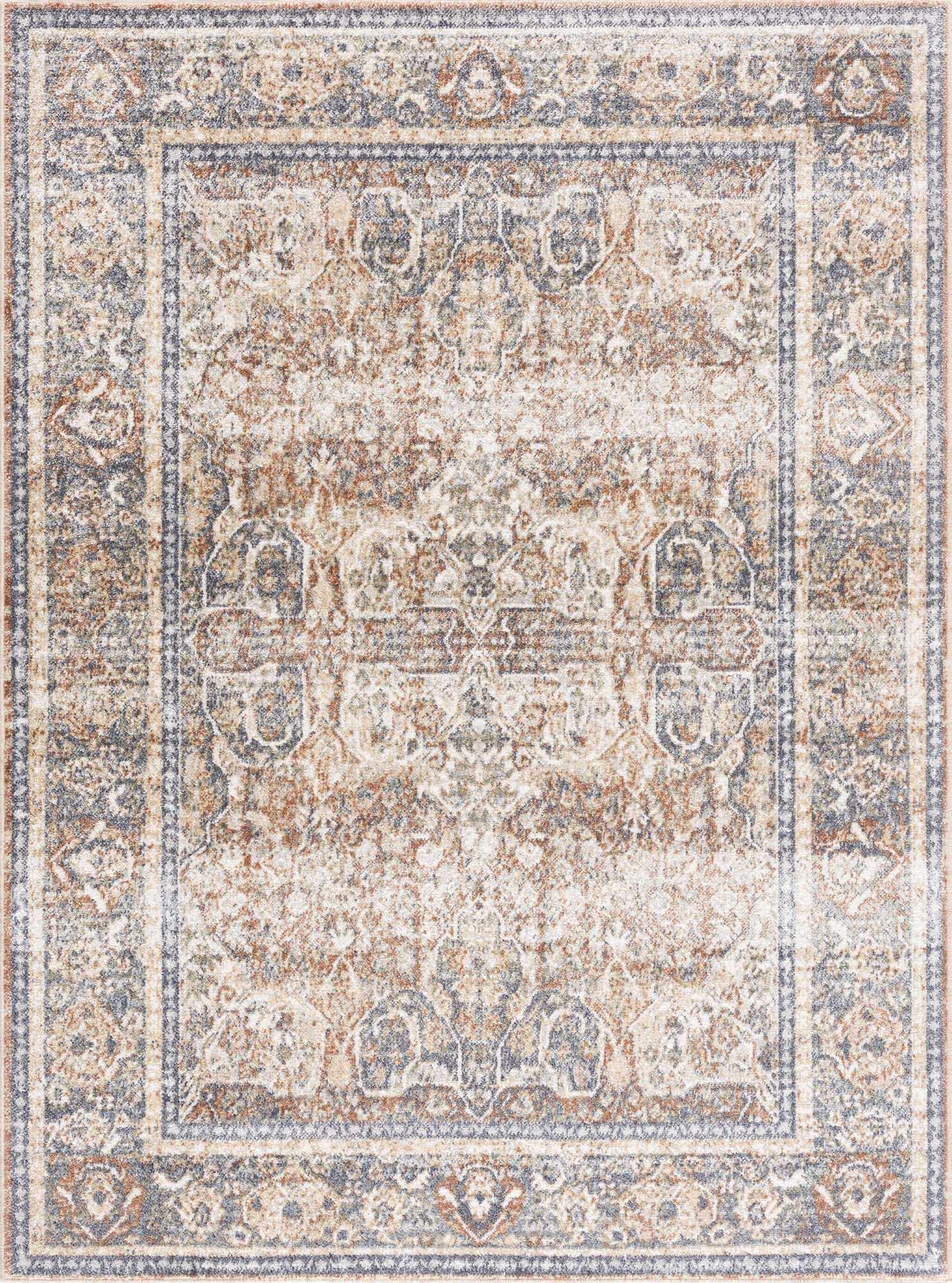 Blue, Rust and Beige Traditional oriental bohemian style area rug