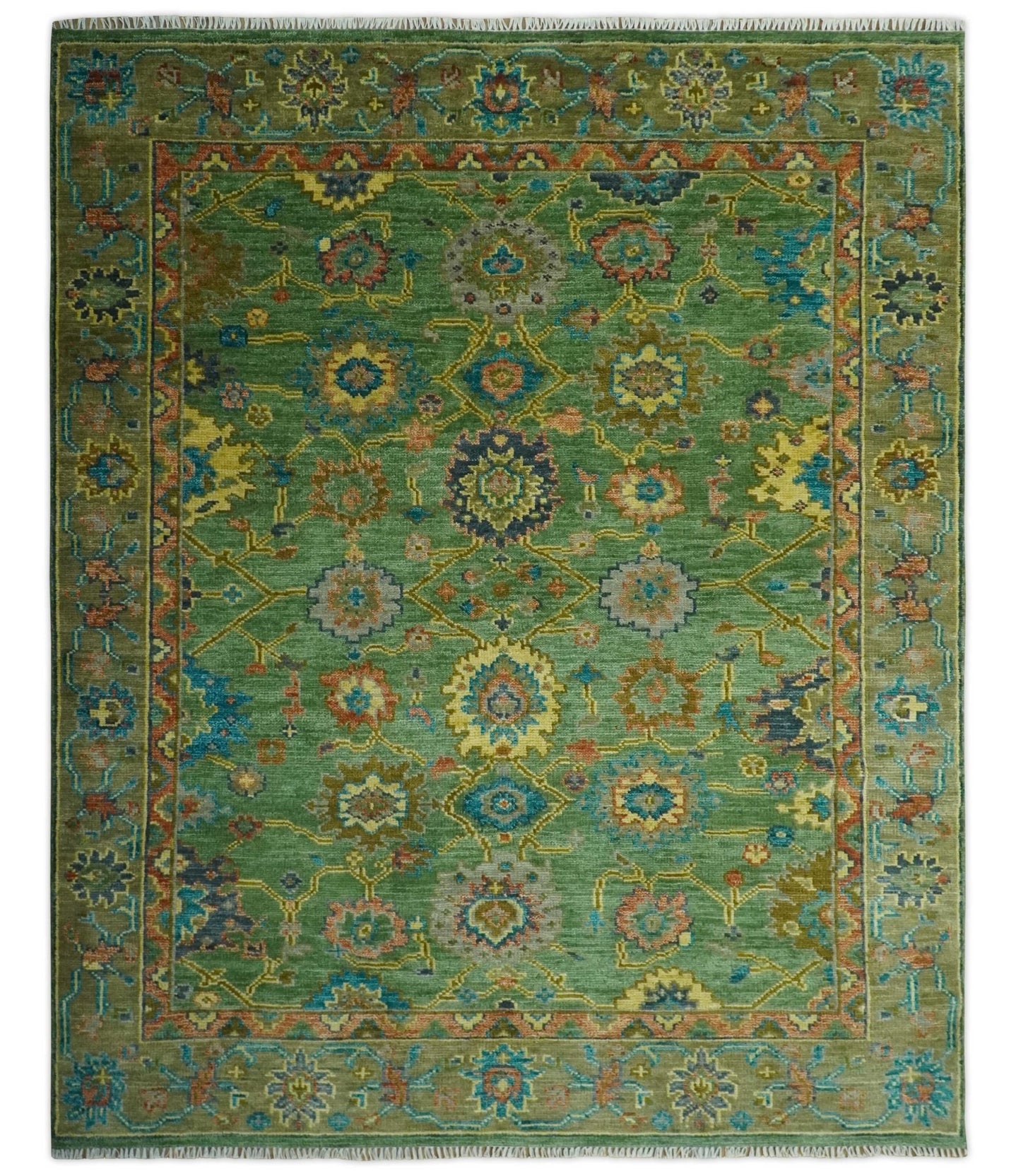 Custom Made Ivory and Olive Traditional Hand Knotted wool Area Rug