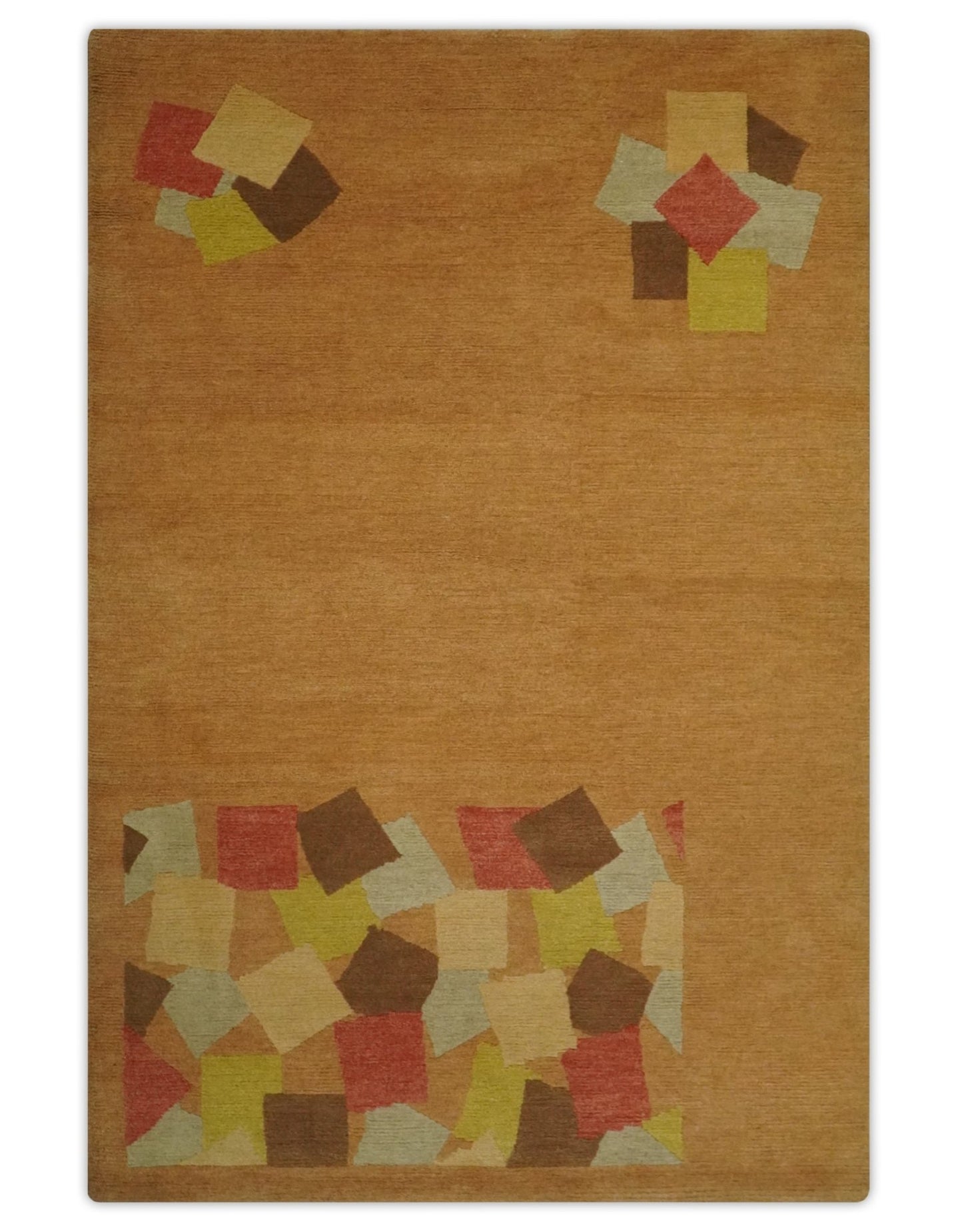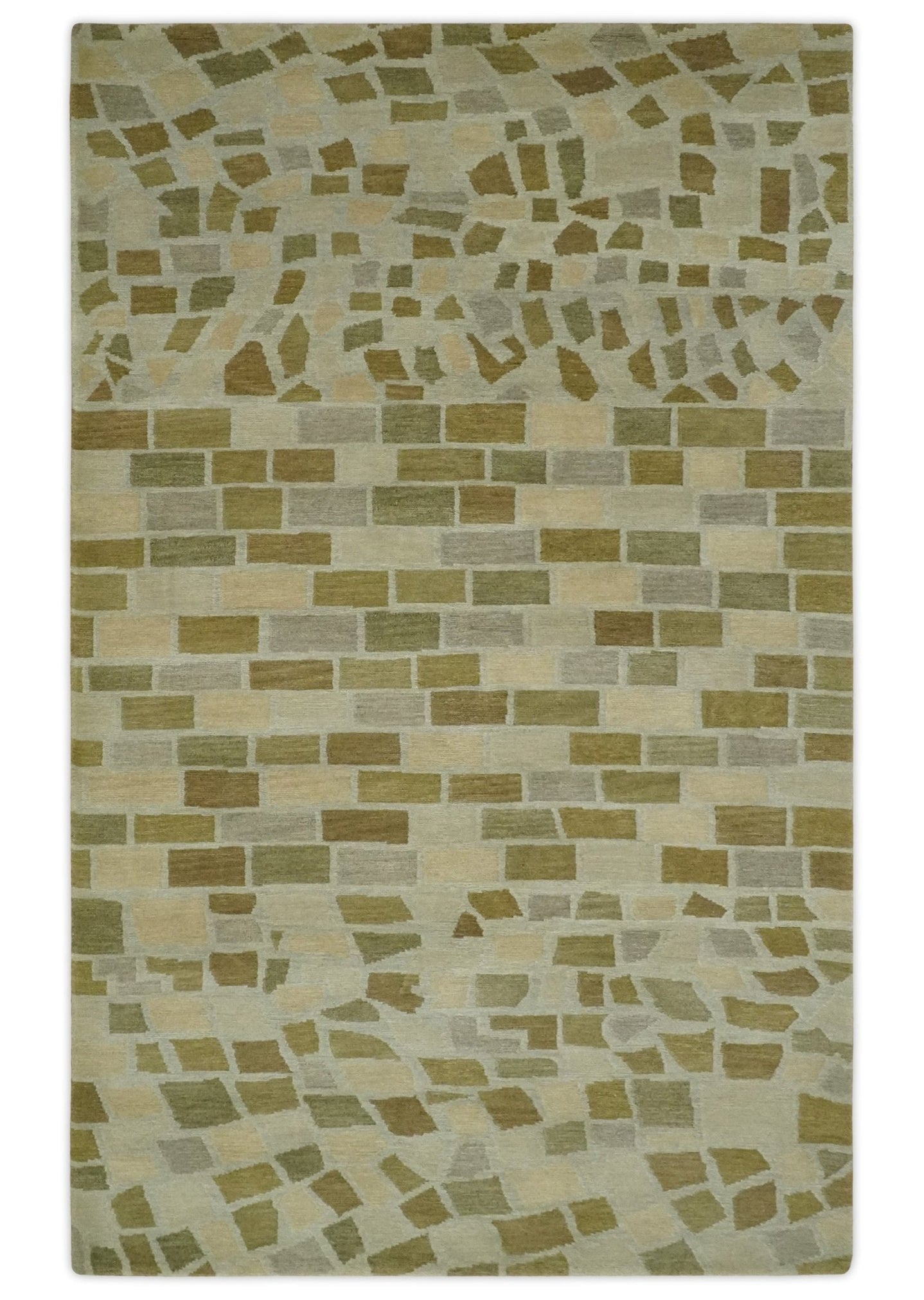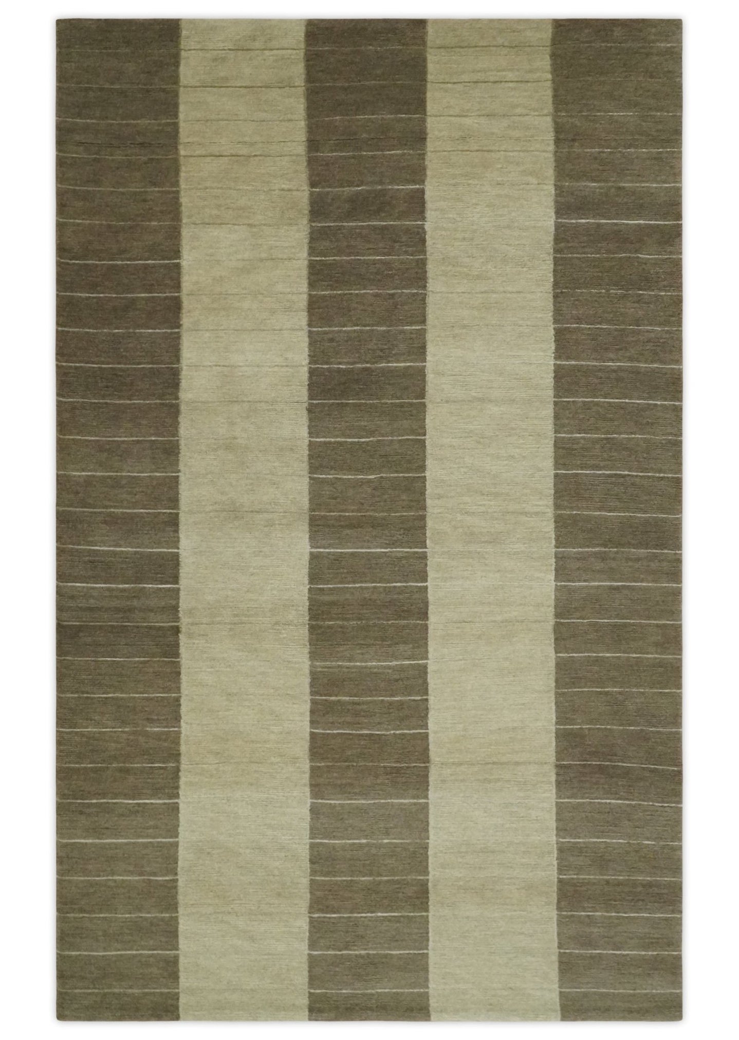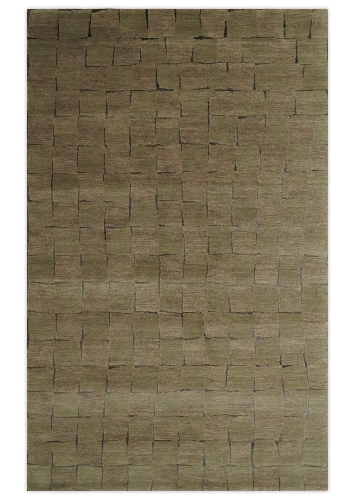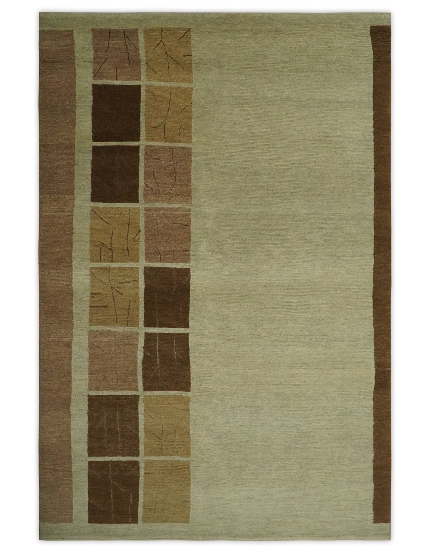 This trendy area rug is expertly handcrafted and offers a sophisticated geometrical design in warm tones of brown, rust, gray, and beige. This handloom rug, measuring 6x8, is made of a lush wool and smooth art silk blend that lends elegance to any home.