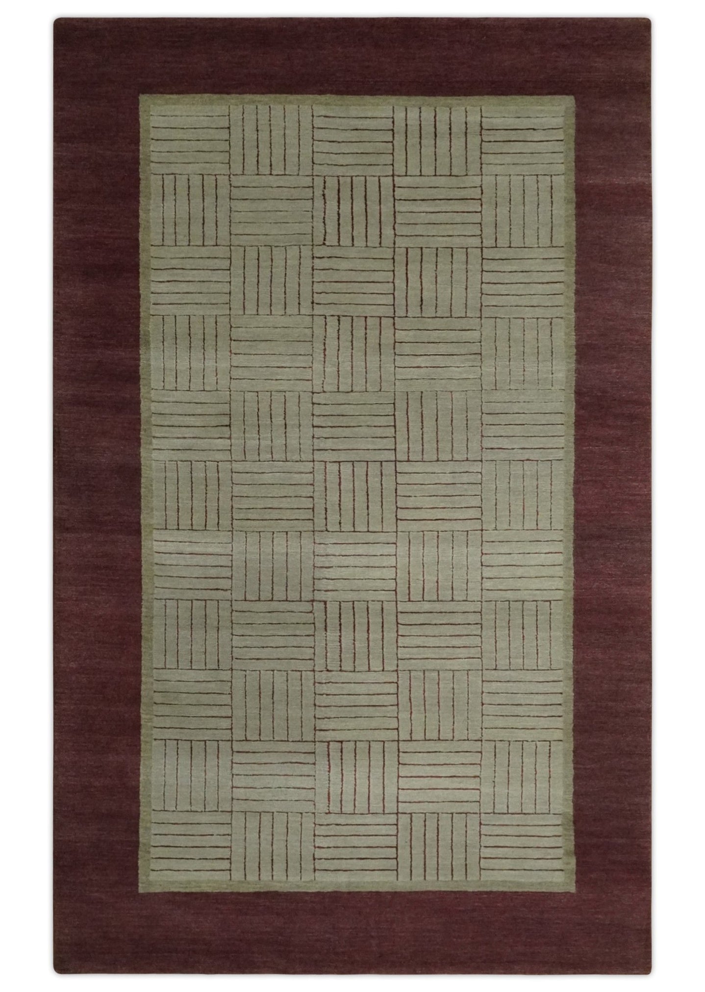 This Modern Geometrical Hand Knotted Maroon and Beige 5x8 Wool and Art Silk Area Rug is made from a unique blend of wool and art silk materials, which are hand knitted to produce a modern and geometric design. Its maroon and beige colors lend a sense of elegance to any room, making it an excellent choice for your home design.