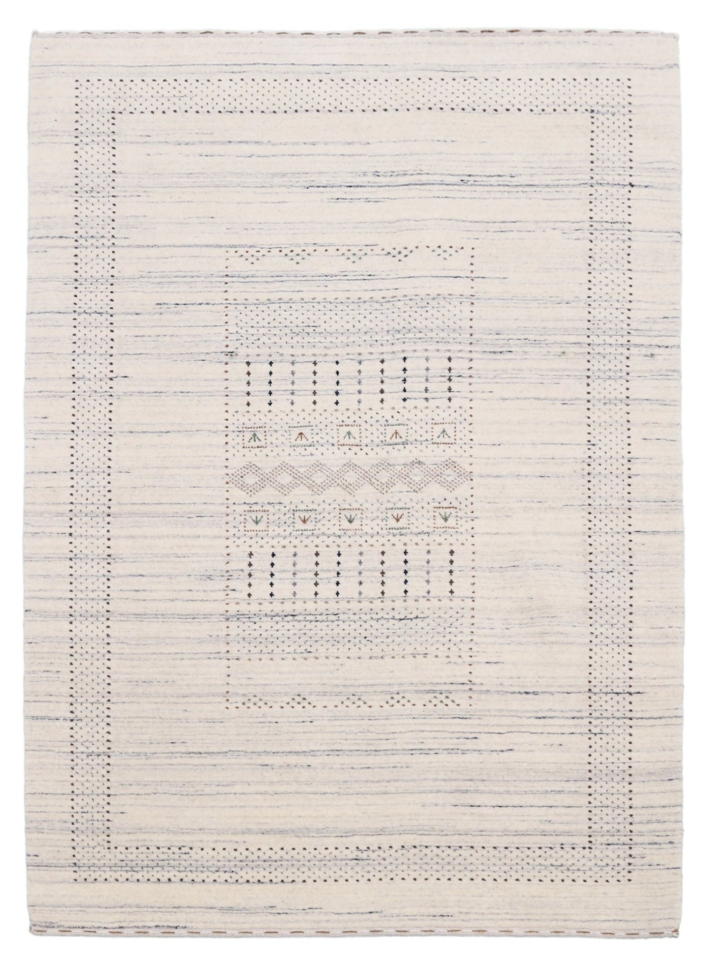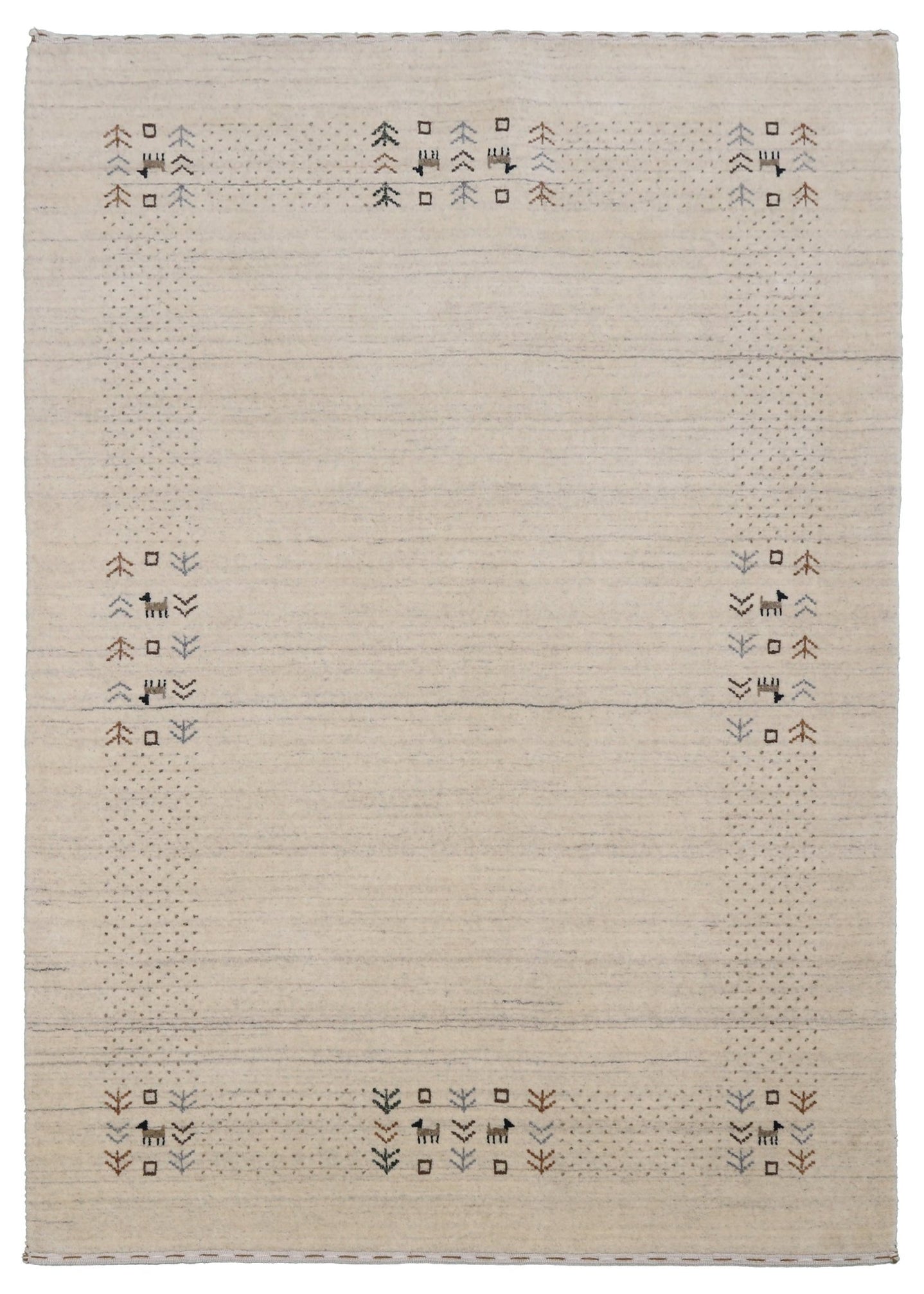 Ivory Gabbeh Border Design Hand Loomed Wool Rug