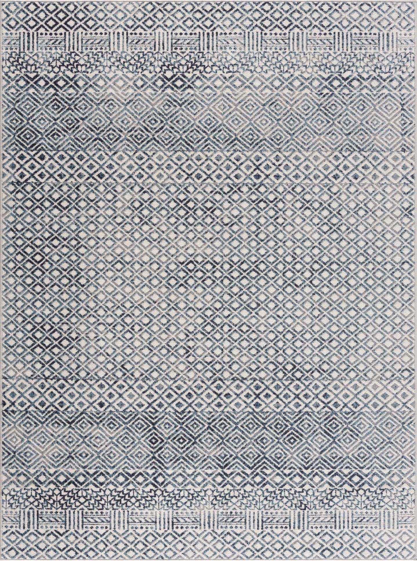 Modern Geometrical Ivory, and Teal Washable Area Rug