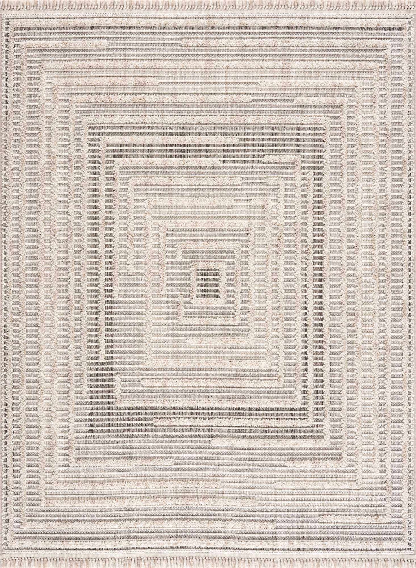 Premium look Ivory Carved Texture Tassel Design Washable area Rug