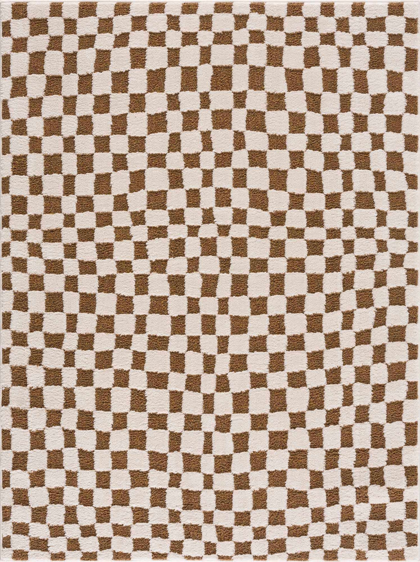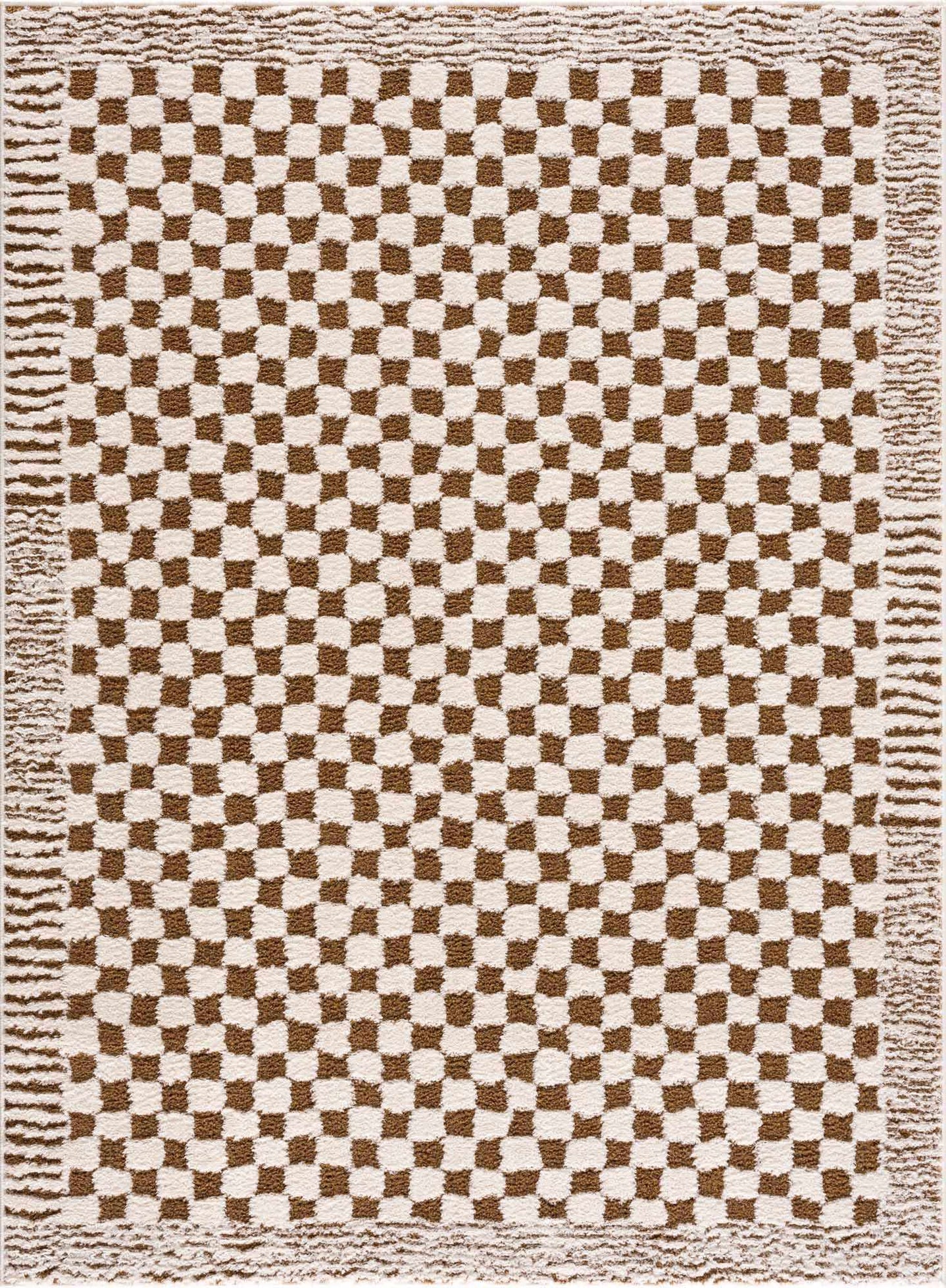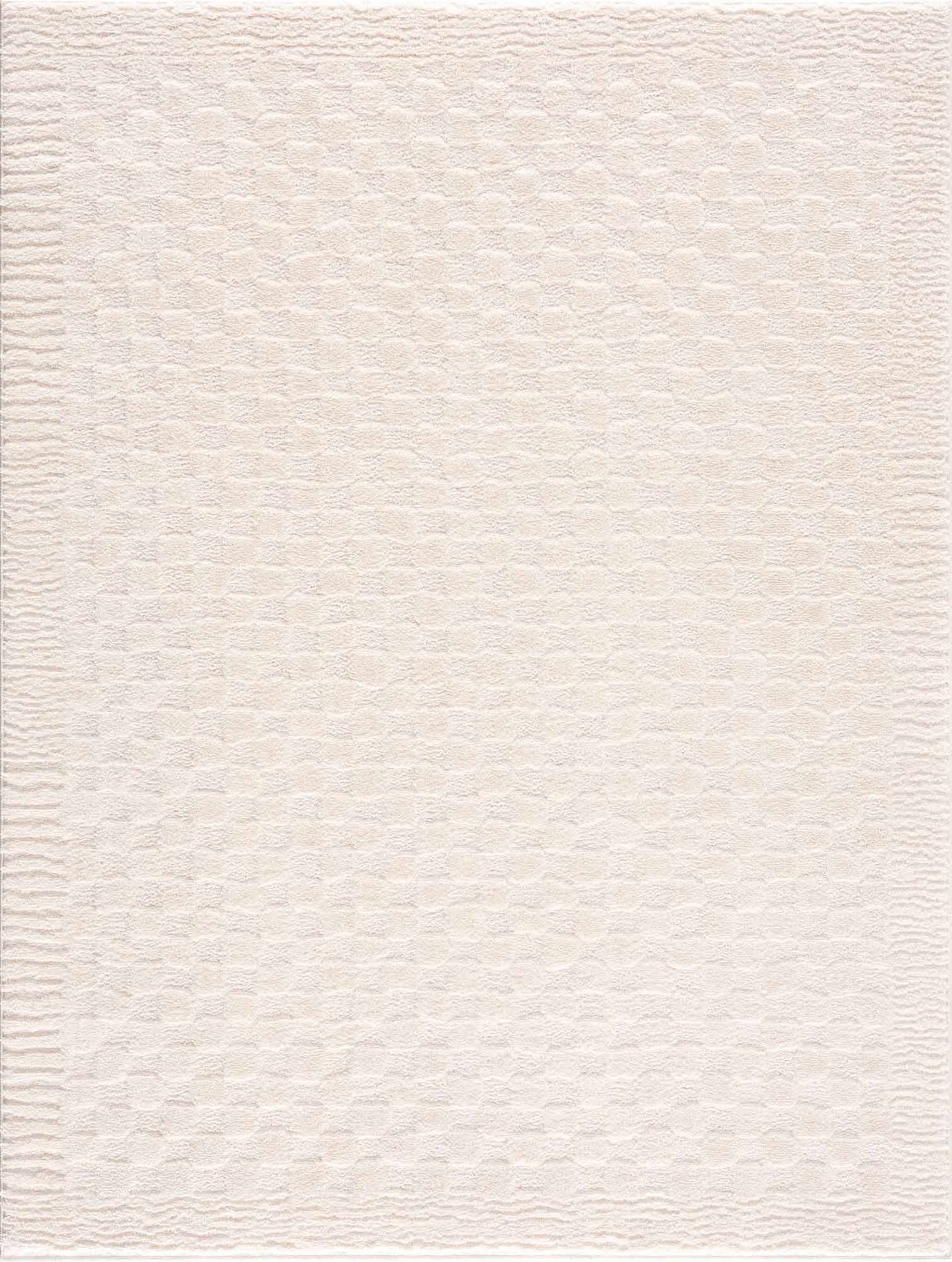Modern Geometrical Beige Checkered Plush Pile Moroccan Style Area Rug