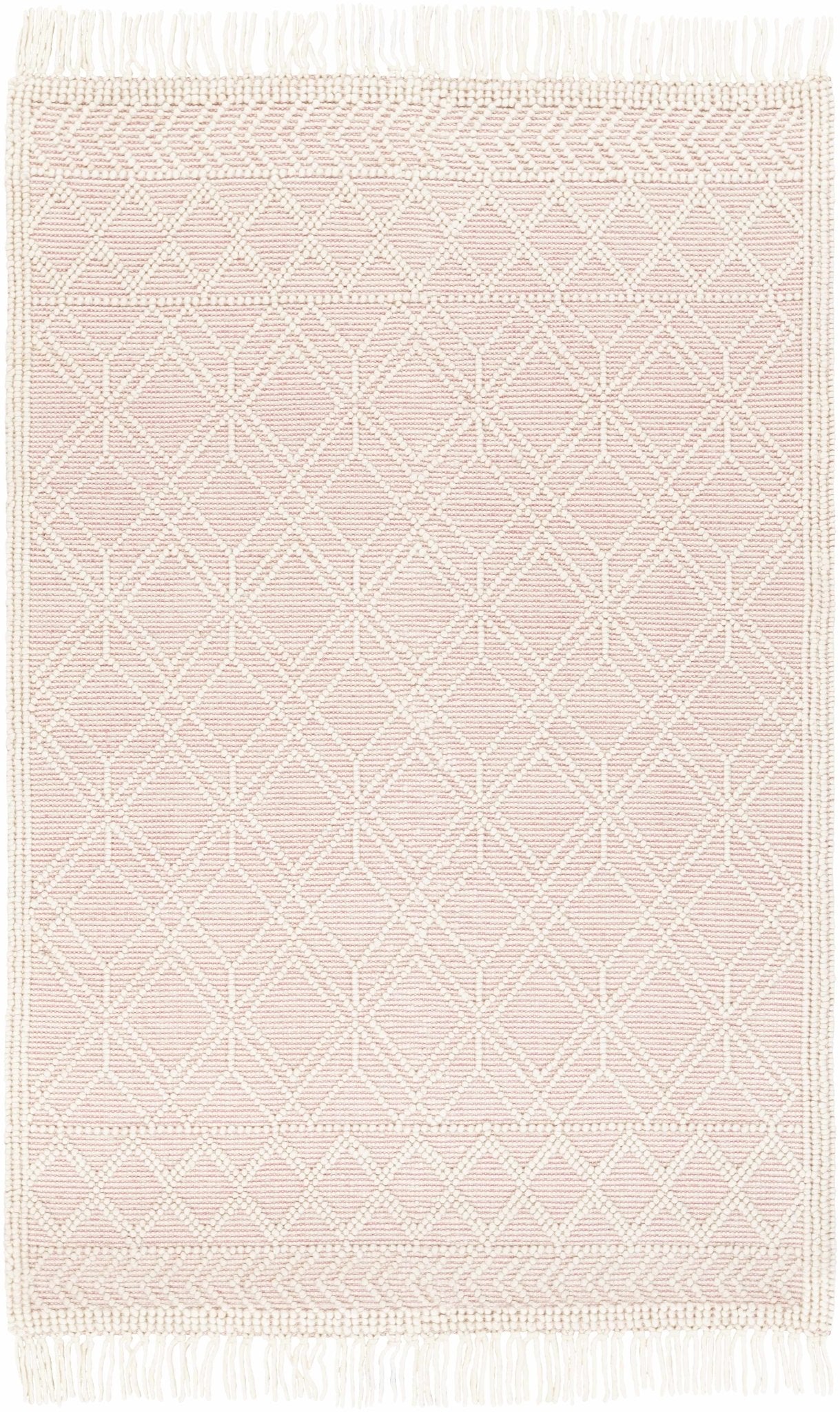 Hand Woven Contemporary Ivory and Peach Tribal Trellis Design Wool Area Rug