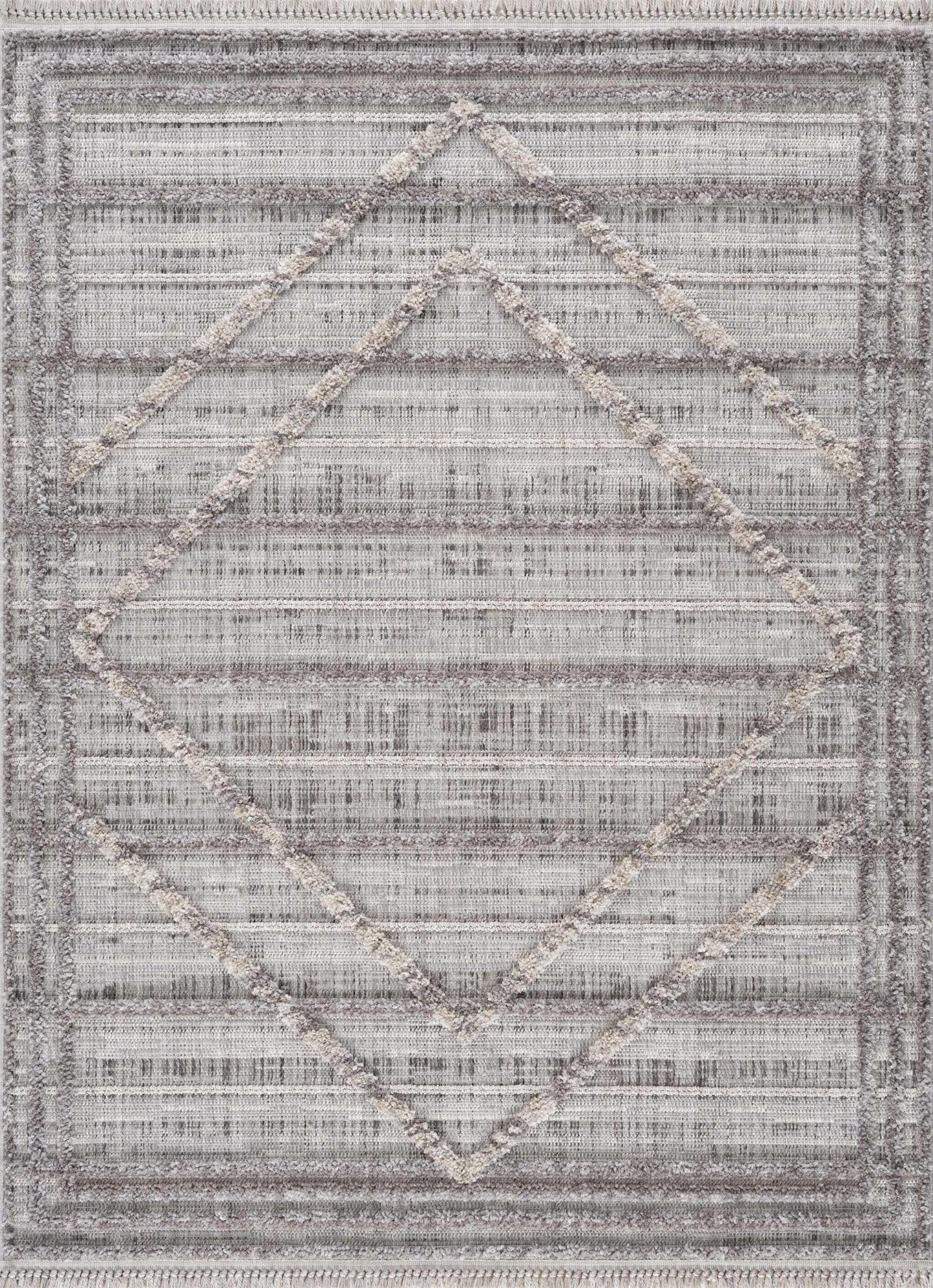 Contemporary Ivory and Gray Tribal Trellis Design Medium Pile Area Rug
