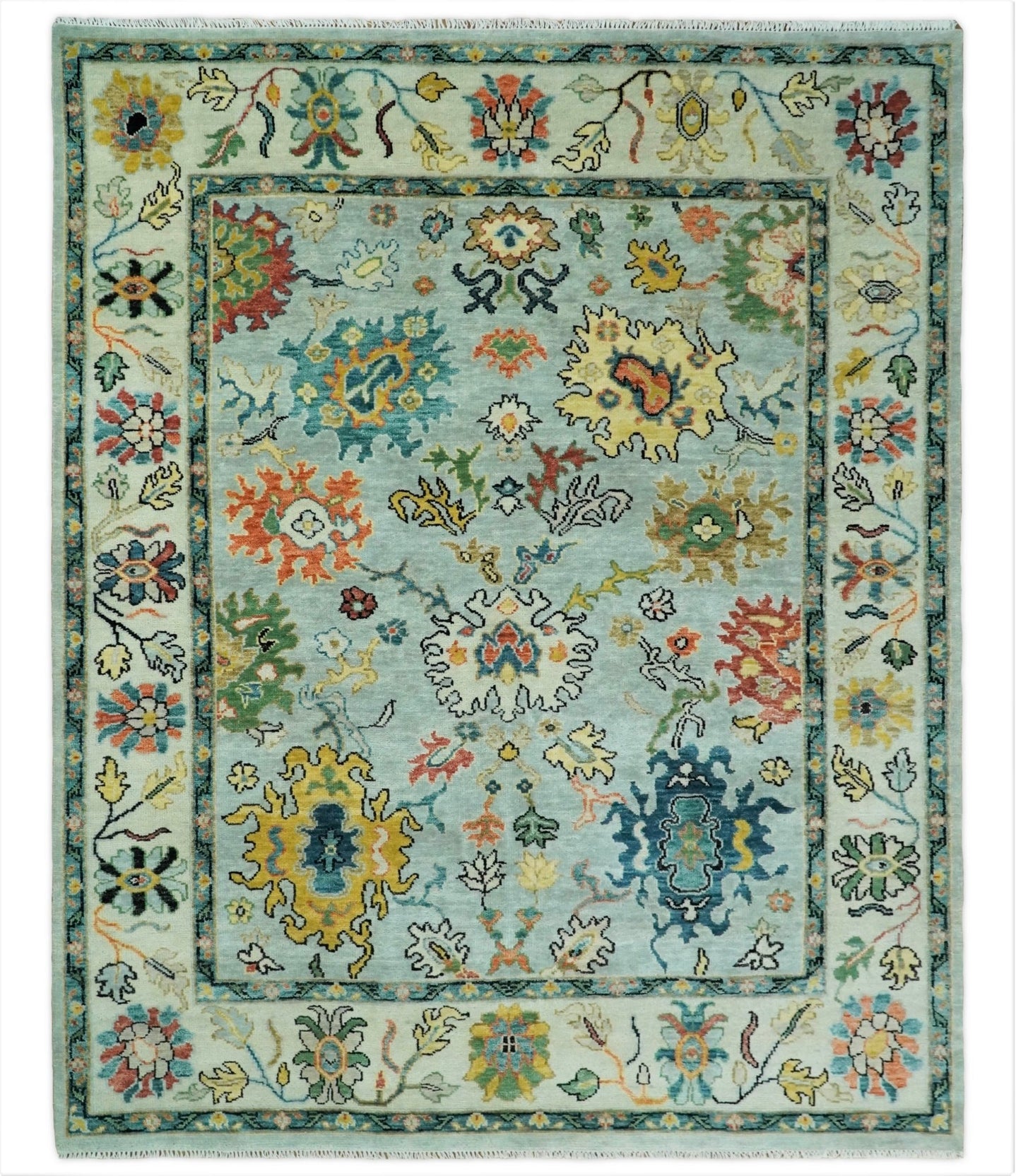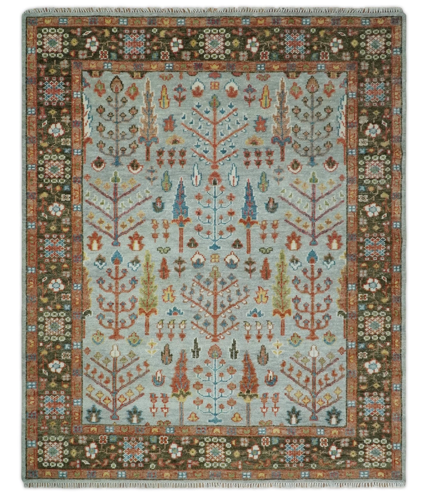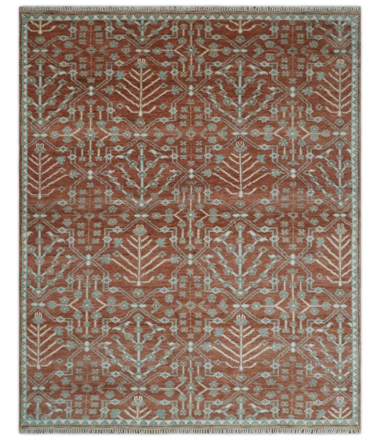 Hand knotted Multi Size Rust and Aqua Floral wool Area Rug