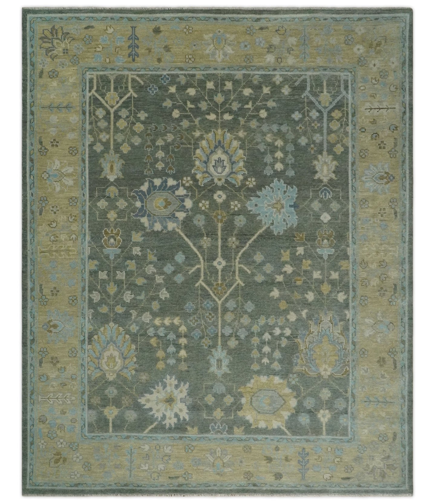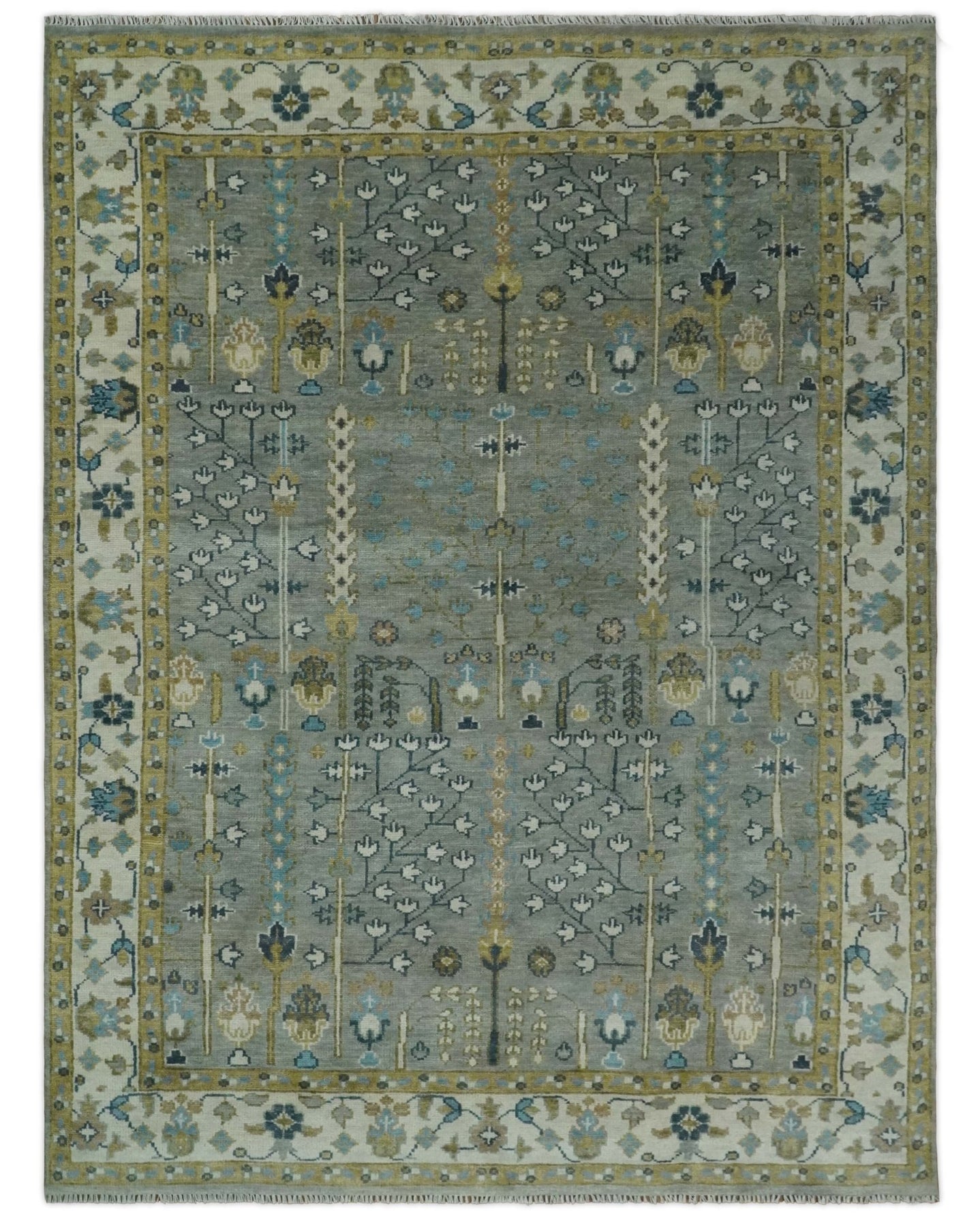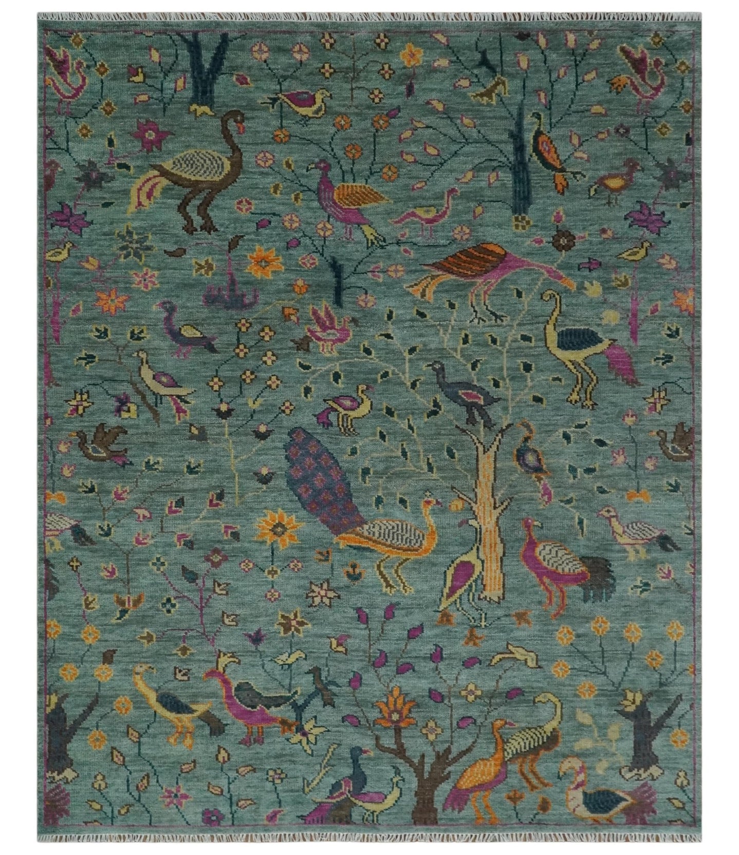 Hand knotted Multi Size Rust and Aqua Floral wool Area Rug