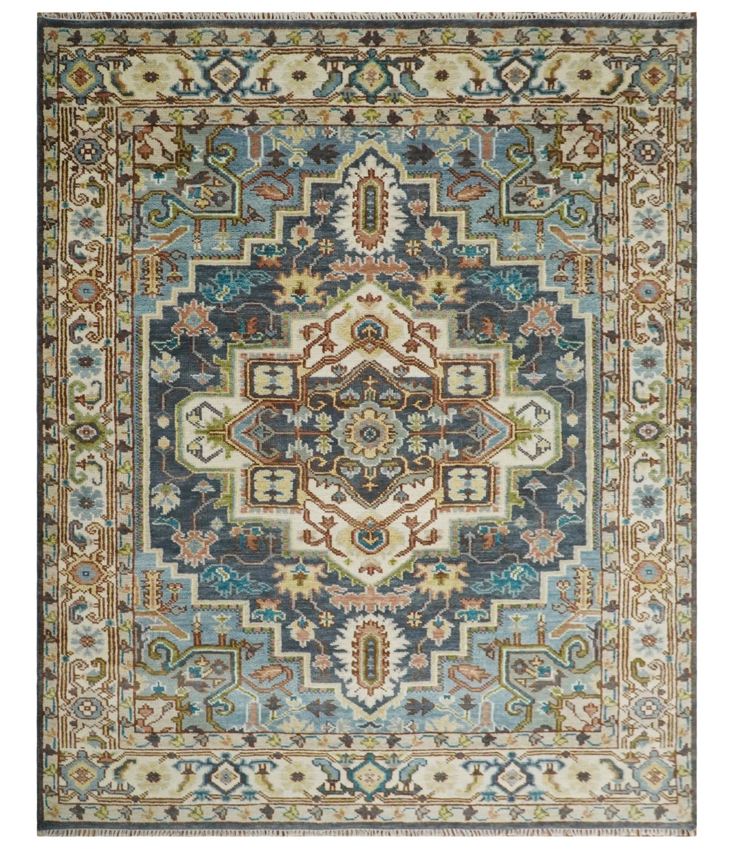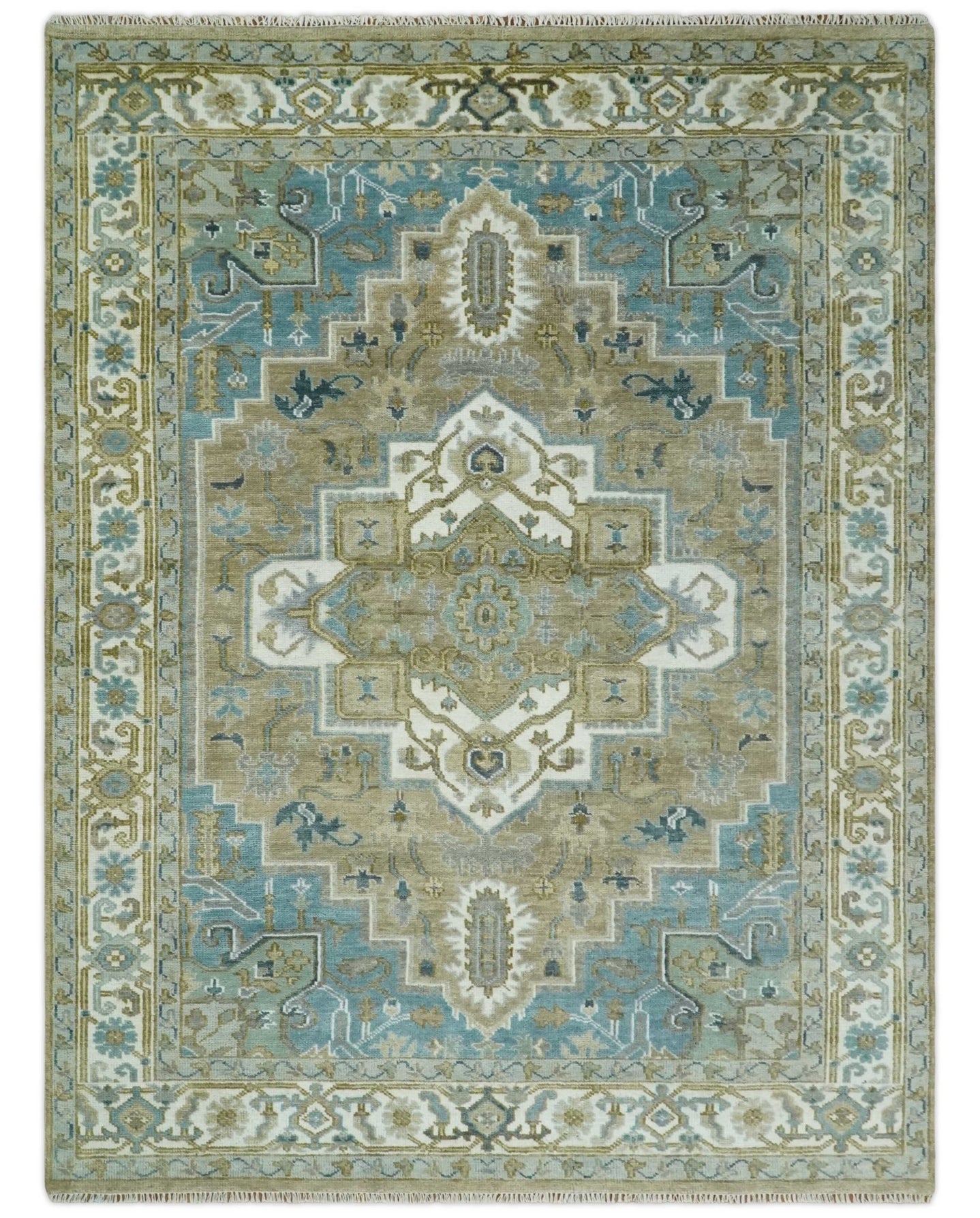 Antique Olive, Blue and Ivory Heriz Serapi Multi Size Wool Area Rug