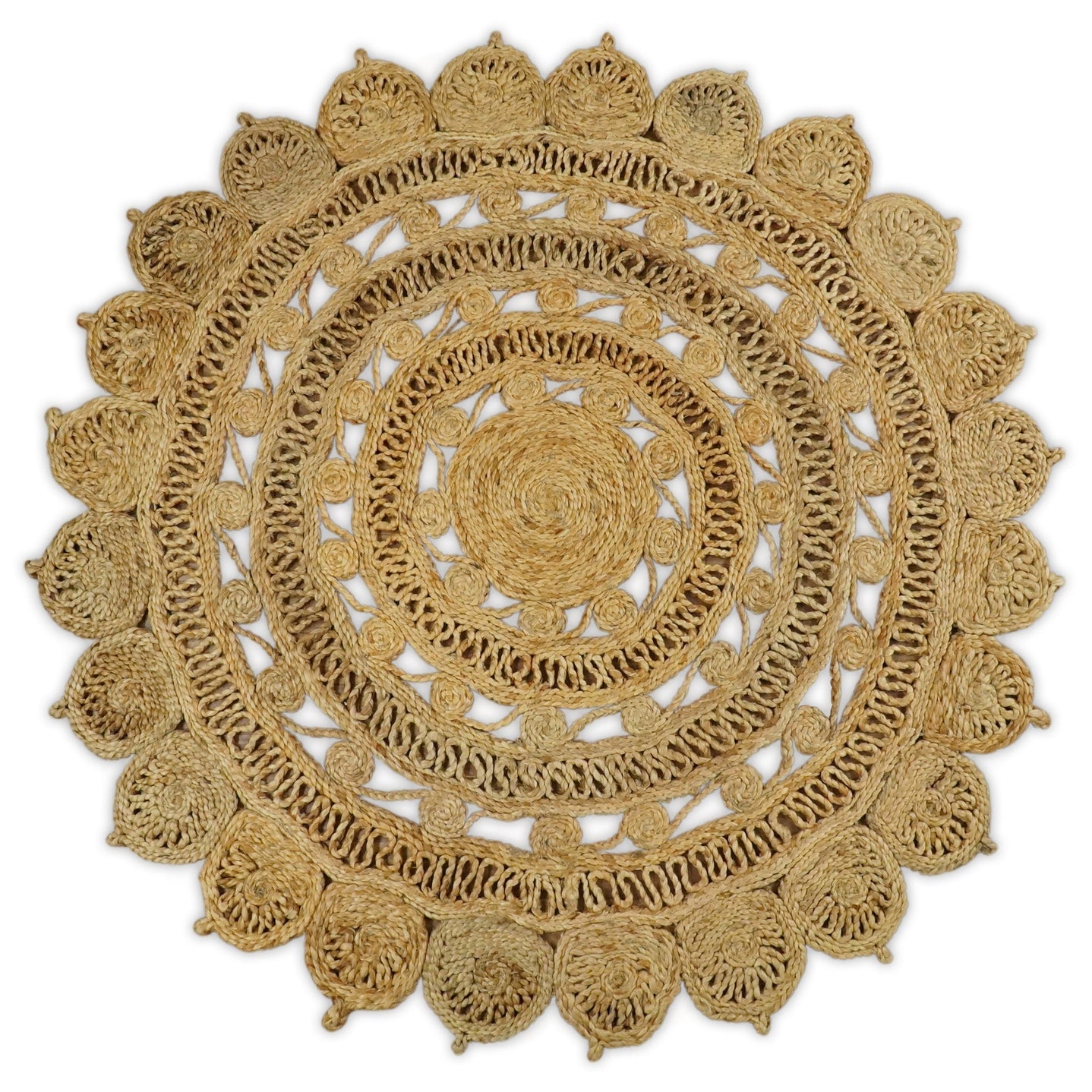 Hand Braided Solid Round Natural Brown Jute Silsal Rug | JR12